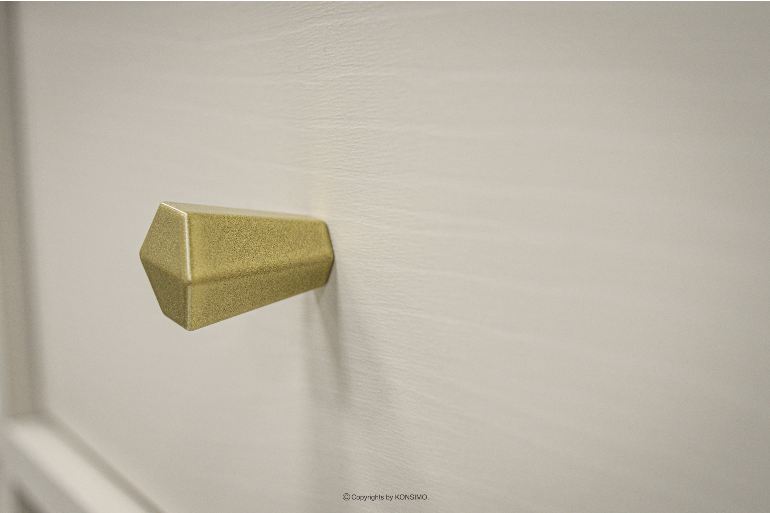 Široká skrinka na televízor na vysokých nožičkách krémová/zlatá je kvintesenciou moderného dizajnu spojeného s funkčnosťou a eleganciou, vytvoreného s ohľadom na súčasné obývacie izby, ktoré majú byť srdcom každého domu. Svetlá, krémová farebnosť nábytku v kombinácii so zlatými kovovými nožičkami vnáša do interiéru pocit ľahkosti a luxusu a zároveň zapadá do najnovších trendov v oblasti interiérového dizajnu.