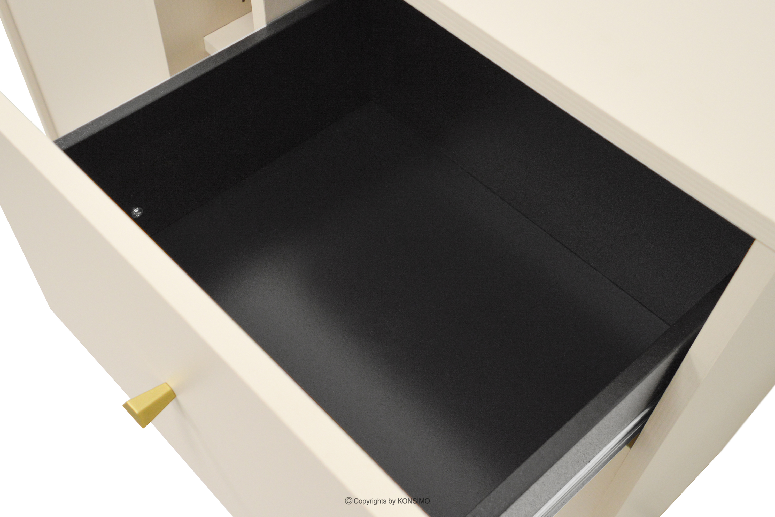 Malá komoda so zásuvkami na zlatých nohách krémová je kvintesenciou moderného dizajnu spojeného s funkčnosťou a eleganciou, vytvoreného s ohľadom na súčasné obývacie izby, ktoré majú byť srdcom každého domu. Svetlá, krémová farebnosť nábytku v kombinácii so zlatými kovovými nožičkami vnáša do interiéru pocit ľahkosti a luxusu a zároveň zapadá do najnovších trendov v oblasti interiérového dizajnu.
