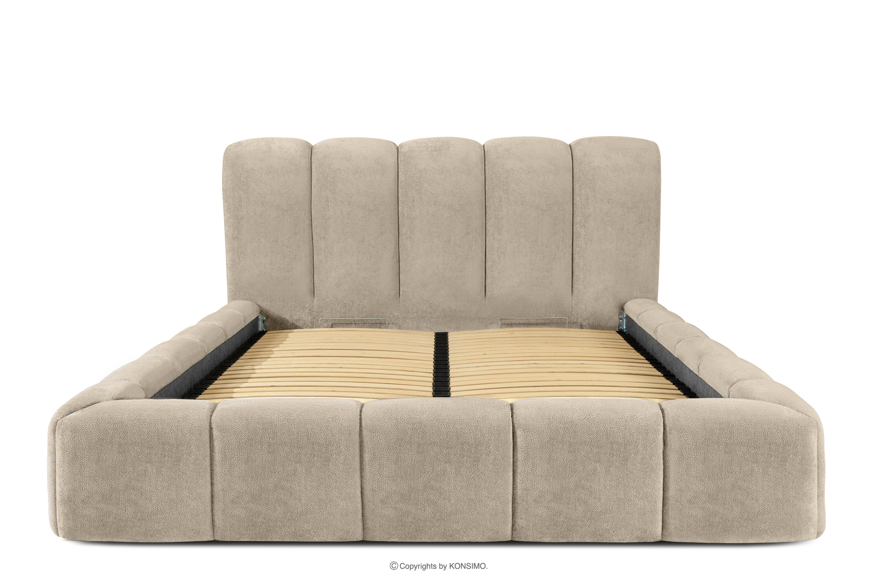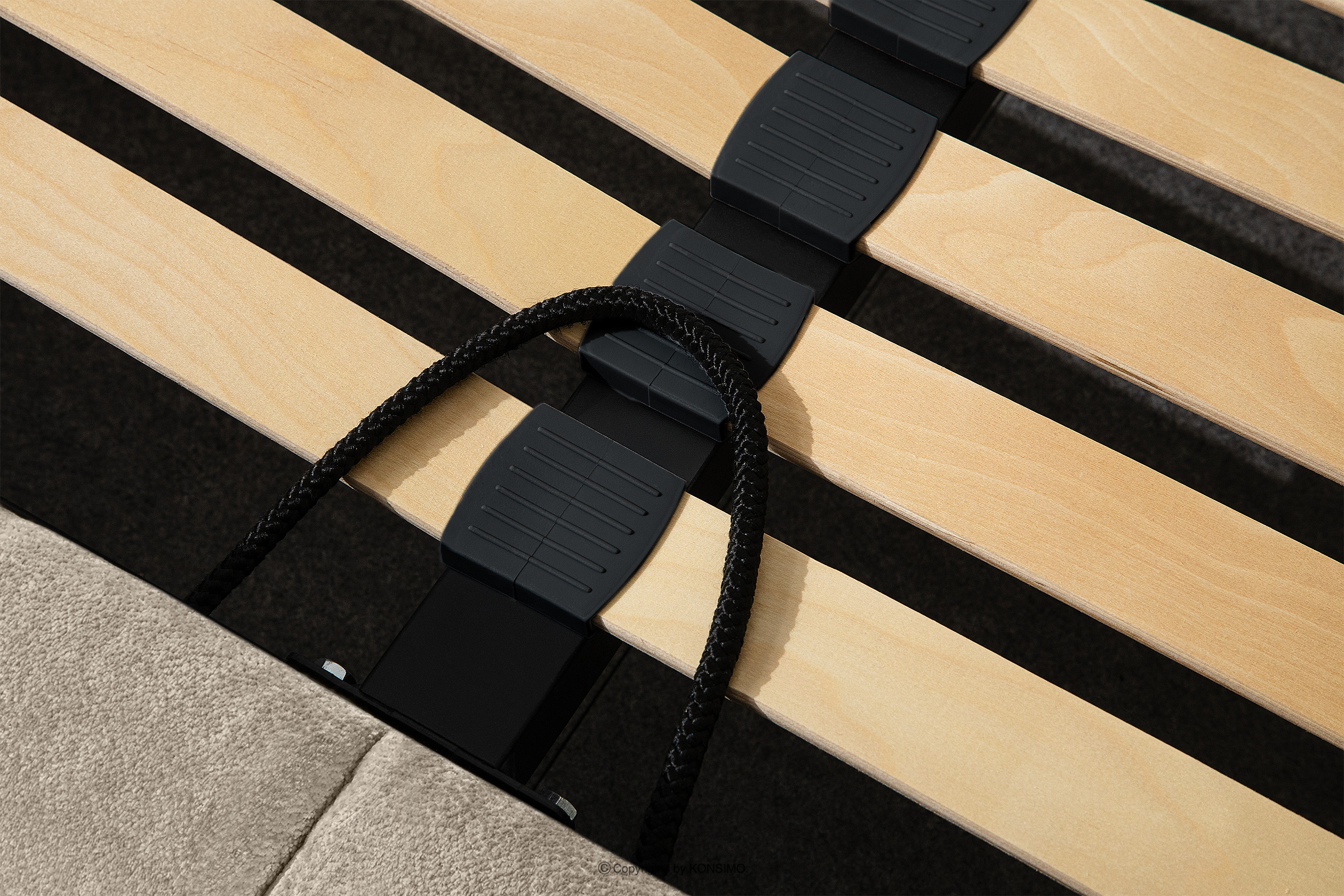 produktu Čalúnená posteľ 160 cm v štýle Japandi so sivobéžovým prešívaním