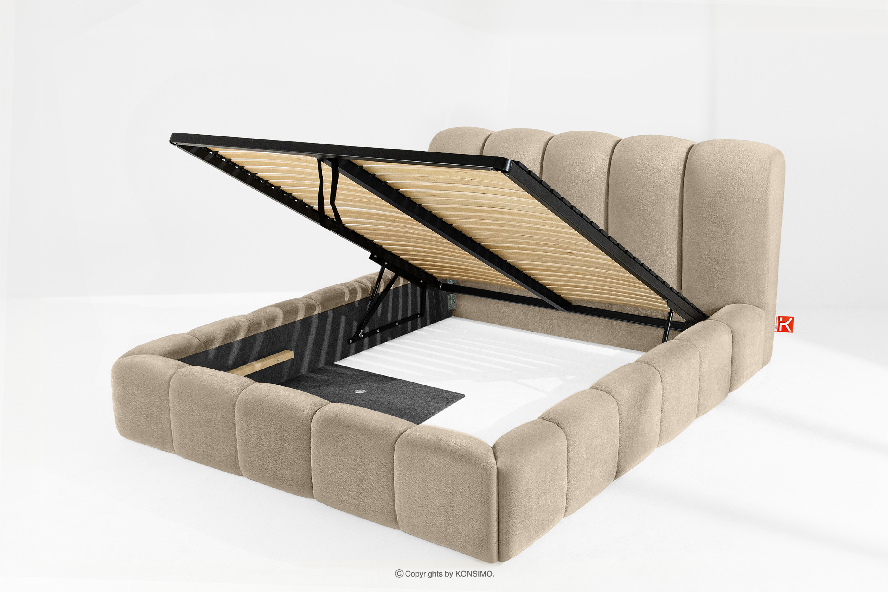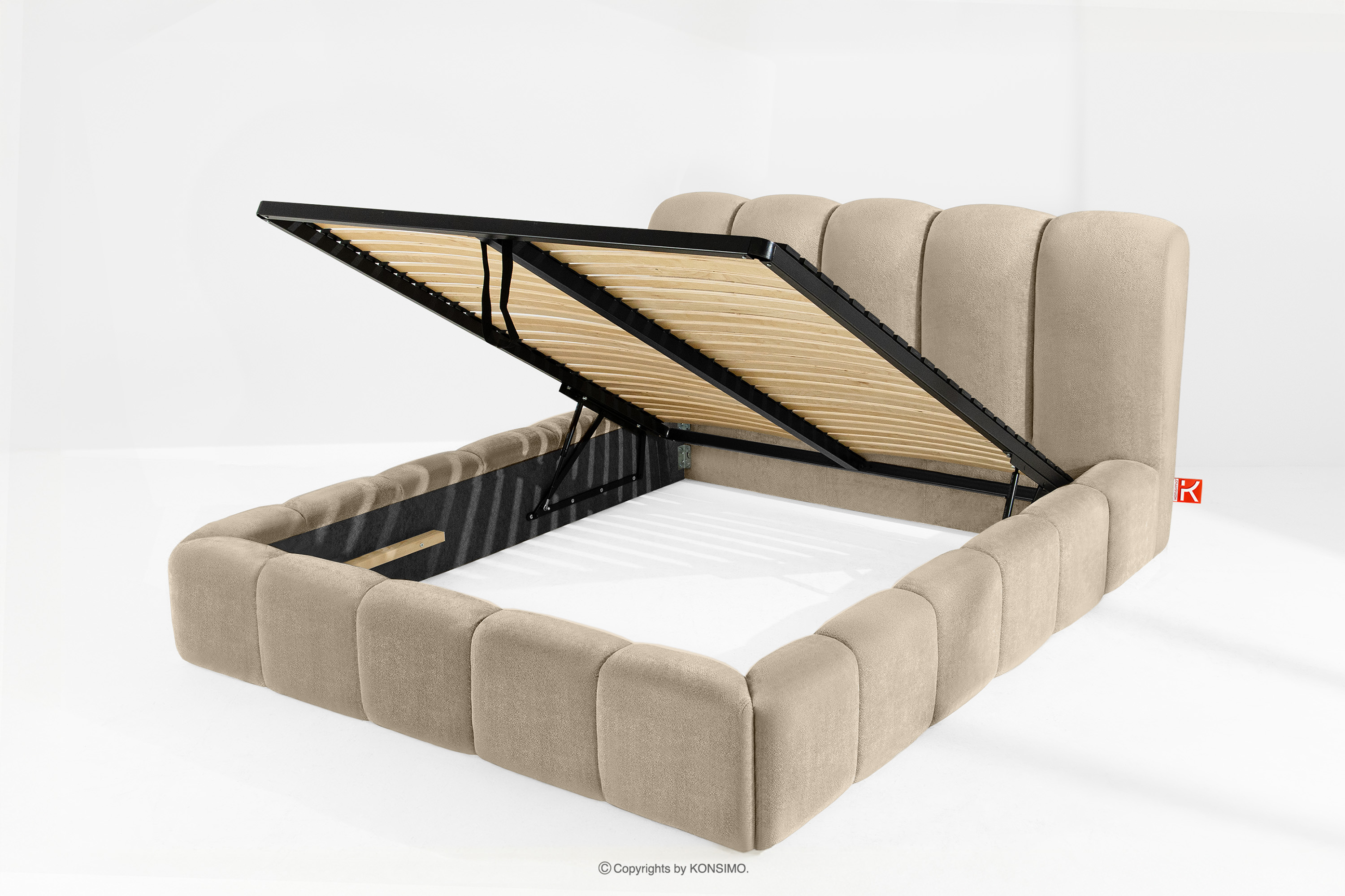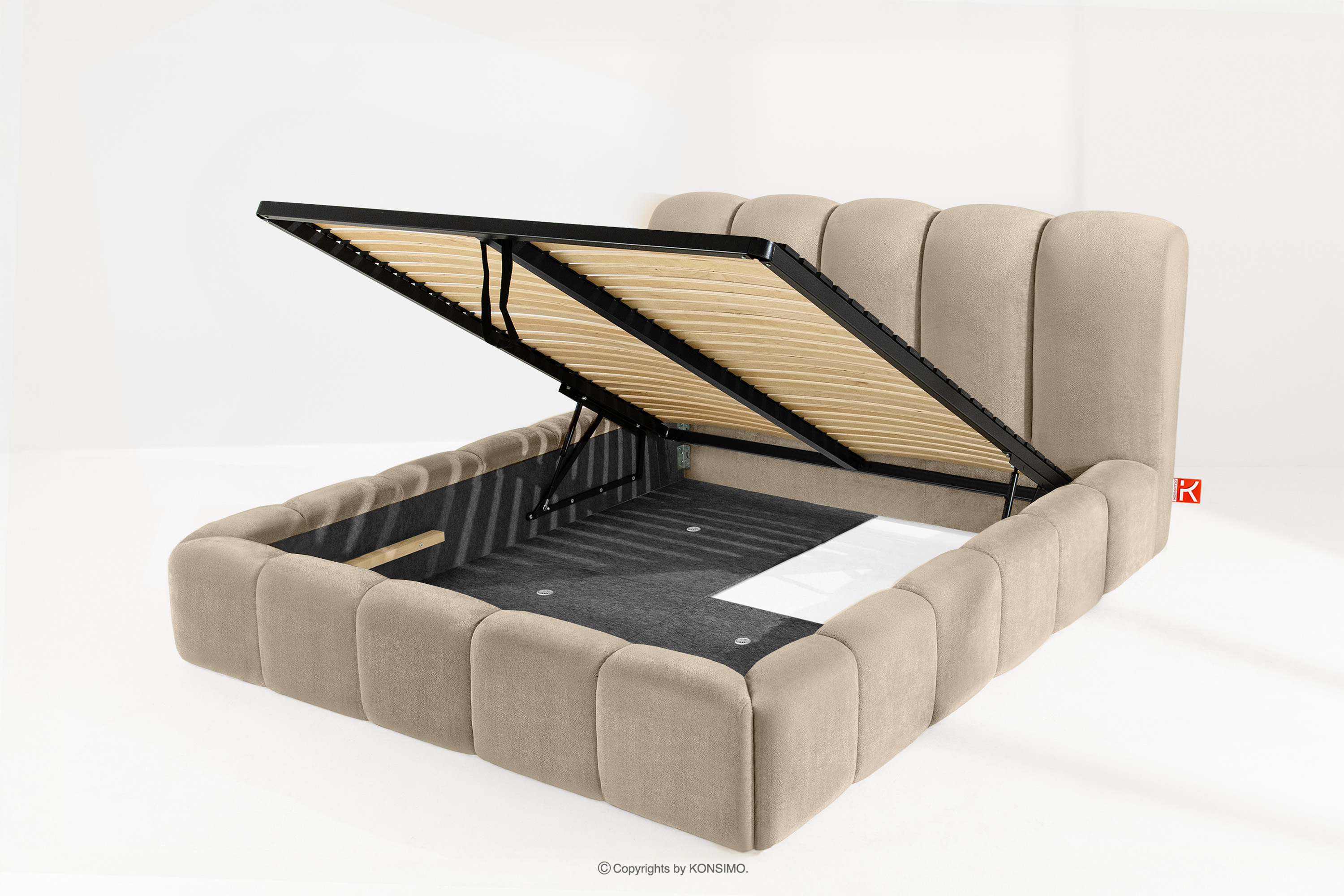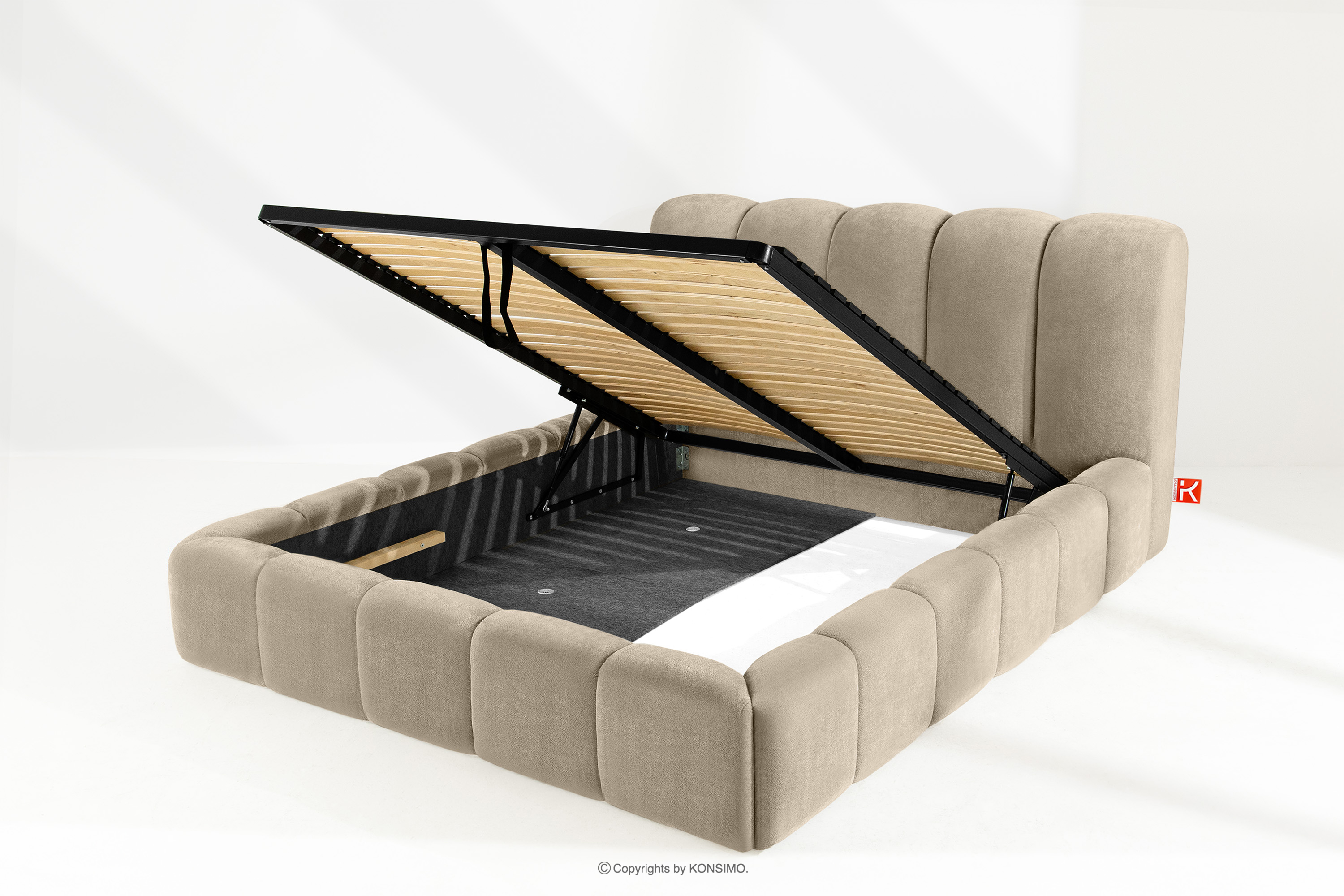 MERIDE Objav celú kolekciu Čalúnená posteľ 160 cm v štýle Japandi so sivobéžovým prešívaním- farba šedo-béžová