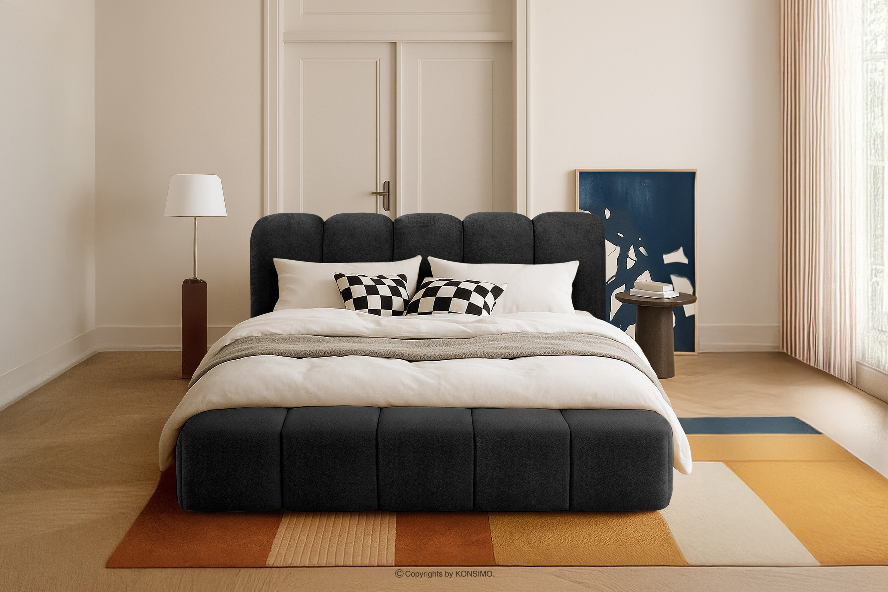 Čalúnená posteľ 180 cm s antracitovým prešívaním je to pocta jednoduchosti, ktorá nekompromisne zachováva sofistikovanosť, čo z neho robí ideálnu voľbu pre tých, ktorí chcú premeniť svoju spálňu na priestor absolútneho pokoja a vizuálnej harmónie. Starostlivo vybraná ženilková tkanina tu hrá hlavnú úlohu, jej jedinečná, nadýchaná priadza dodáva nábytku jedinečnú hĺbku a ušľachtilosť, vďaka čomu je posteľ nielen miestom na spanie, ale aj skutočnou ozdobou interiéru.