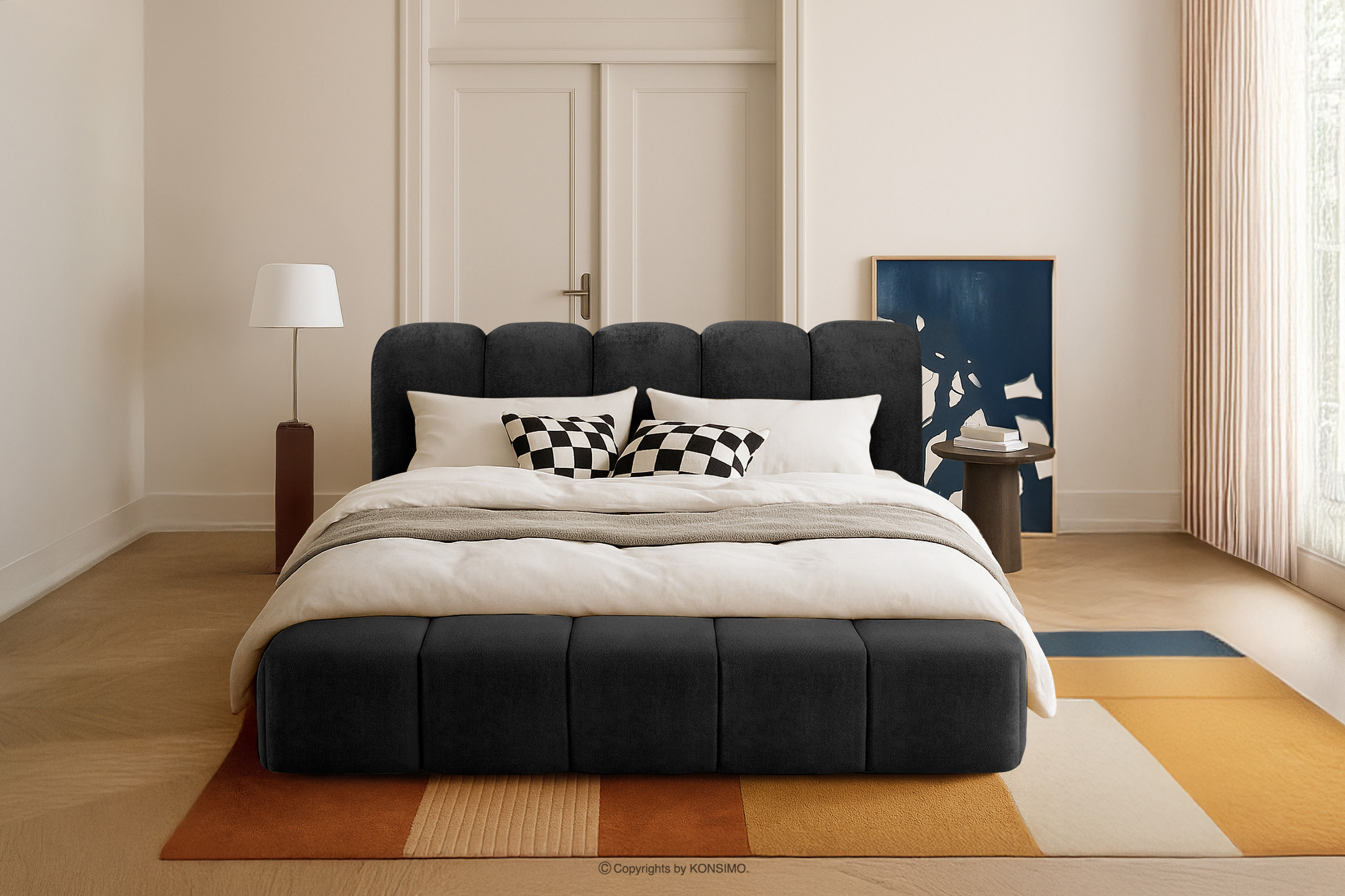 Čalúnená posteľ 200 cm s antracitovým prešívaním je to pocta jednoduchosti, ktorá nekompromisne zachováva sofistikovanosť, čo z neho robí ideálnu voľbu pre tých, ktorí chcú premeniť svoju spálňu na priestor absolútneho pokoja a vizuálnej harmónie. Starostlivo vybraná ženilková tkanina tu hrá hlavnú úlohu, jej jedinečná, nadýchaná priadza dodáva nábytku jedinečnú hĺbku a ušľachtilosť, vďaka čomu je posteľ nielen miestom na spanie, ale aj skutočnou ozdobou interiéru.