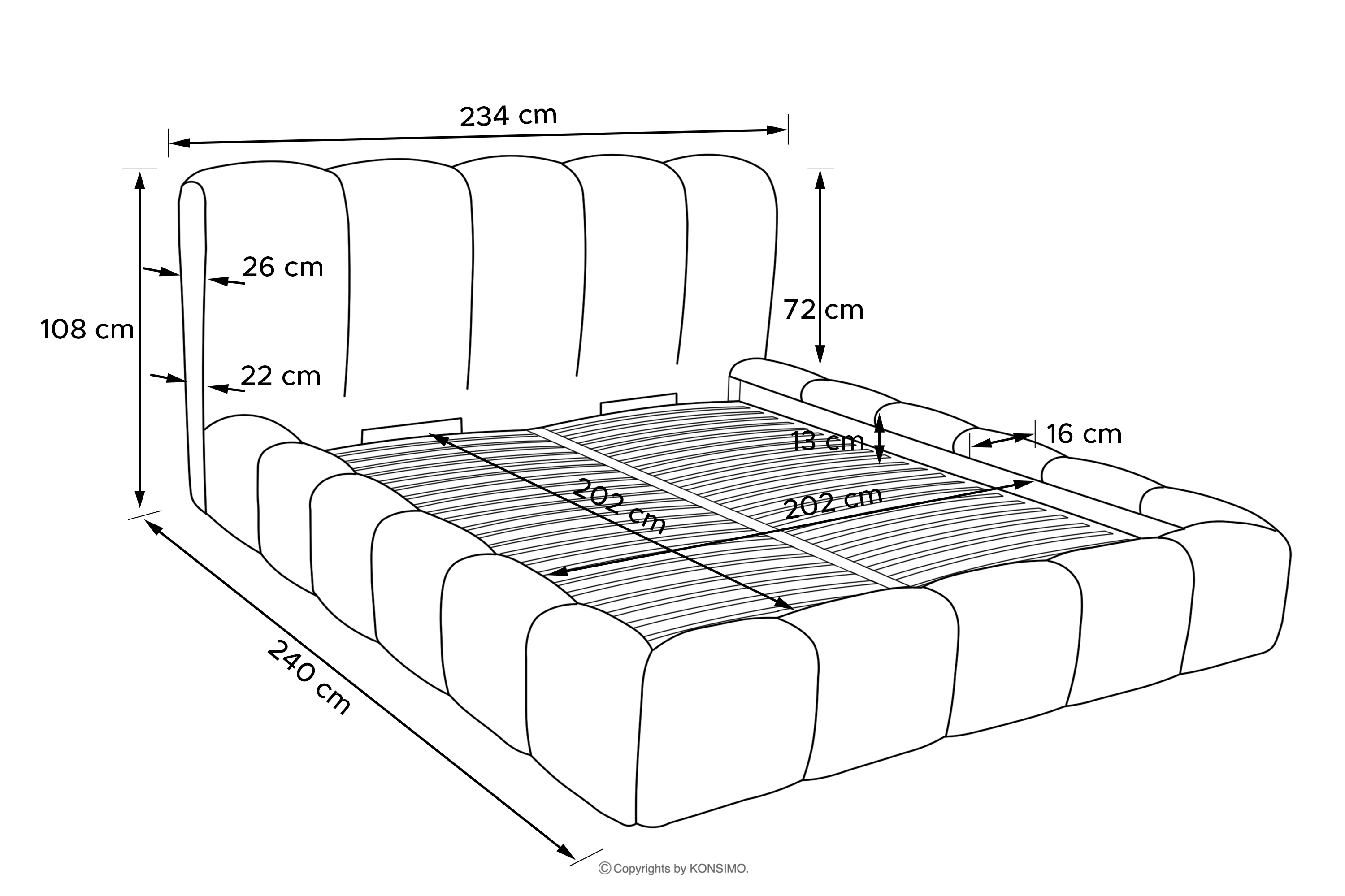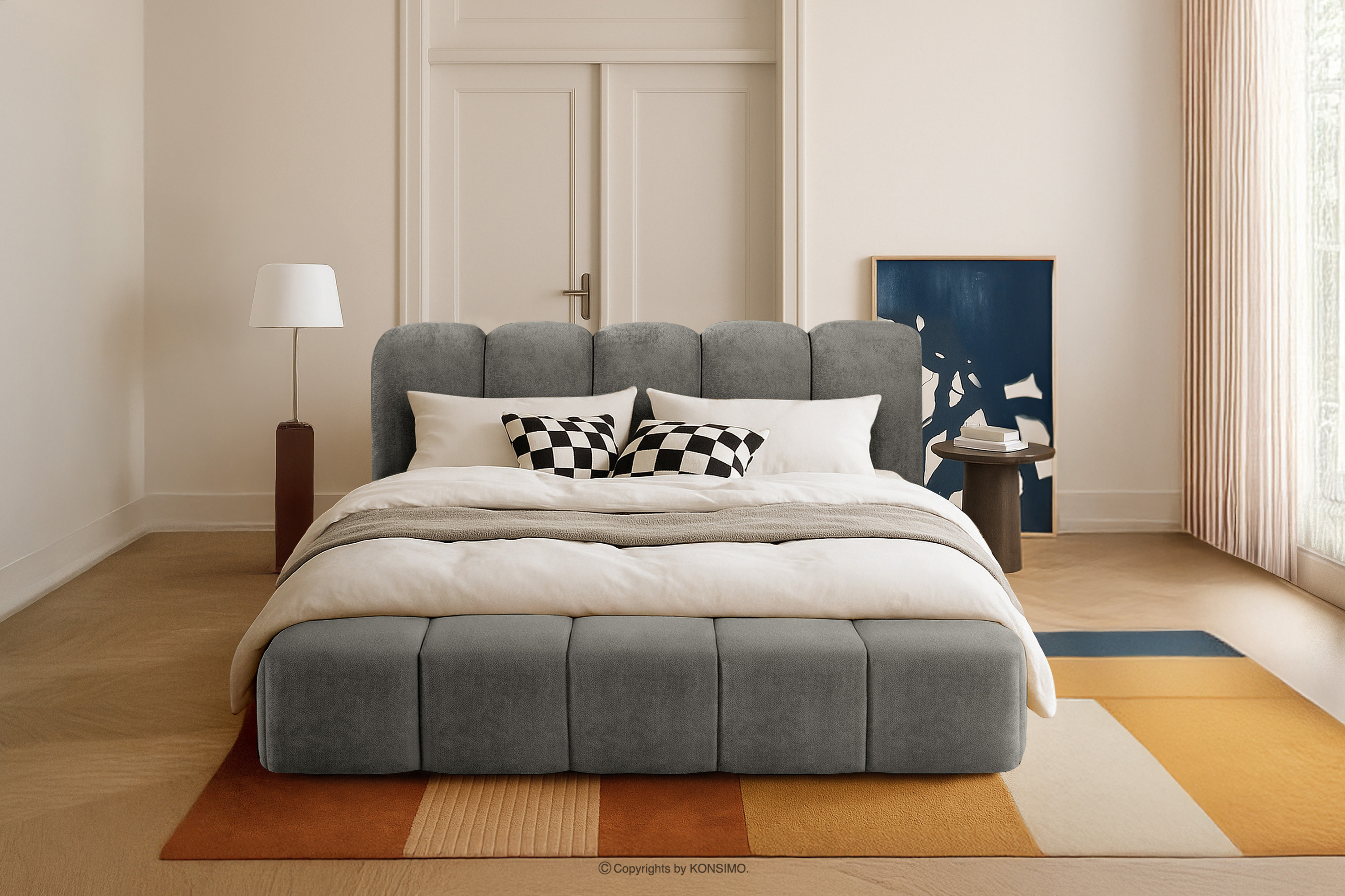 Čalúnená posteľ 200 cm s tmavosivým prešívaním je to pocta jednoduchosti, ktorá nekompromisne zachováva sofistikovanosť, čo z neho robí ideálnu voľbu pre tých, ktorí chcú premeniť svoju spálňu na priestor absolútneho pokoja a vizuálnej harmónie. Starostlivo vybraná ženilková tkanina tu hrá hlavnú úlohu, jej jedinečná, nadýchaná priadza dodáva nábytku jedinečnú hĺbku a ušľachtilosť, vďaka čomu je posteľ nielen miestom na spanie, ale aj skutočnou ozdobou interiéru.