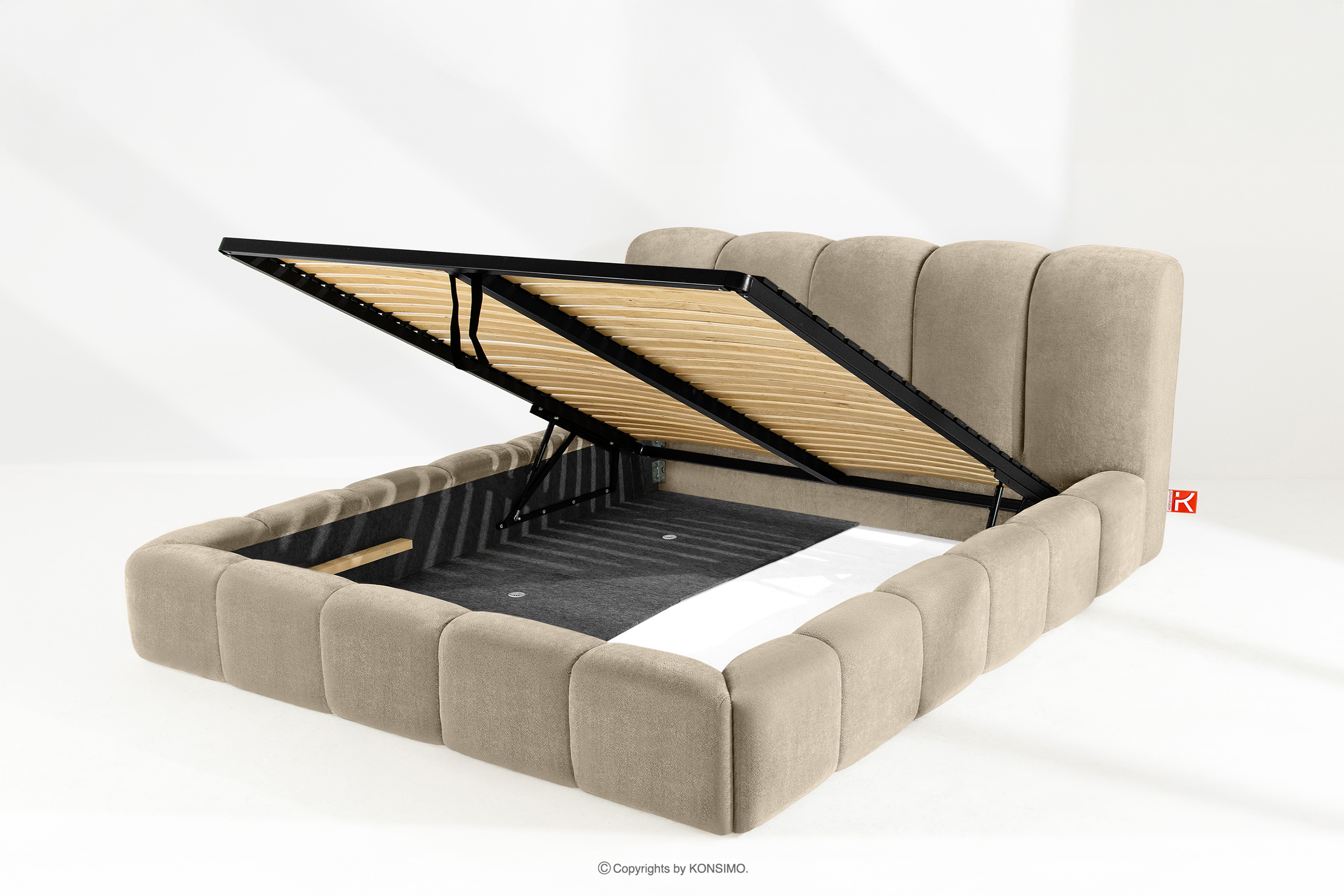 MERIDE Objav celú kolekciu Čalúnená posteľ 200 cm v štýle Japandi so sivobéžovým prešívaním- farba šedo-béžová