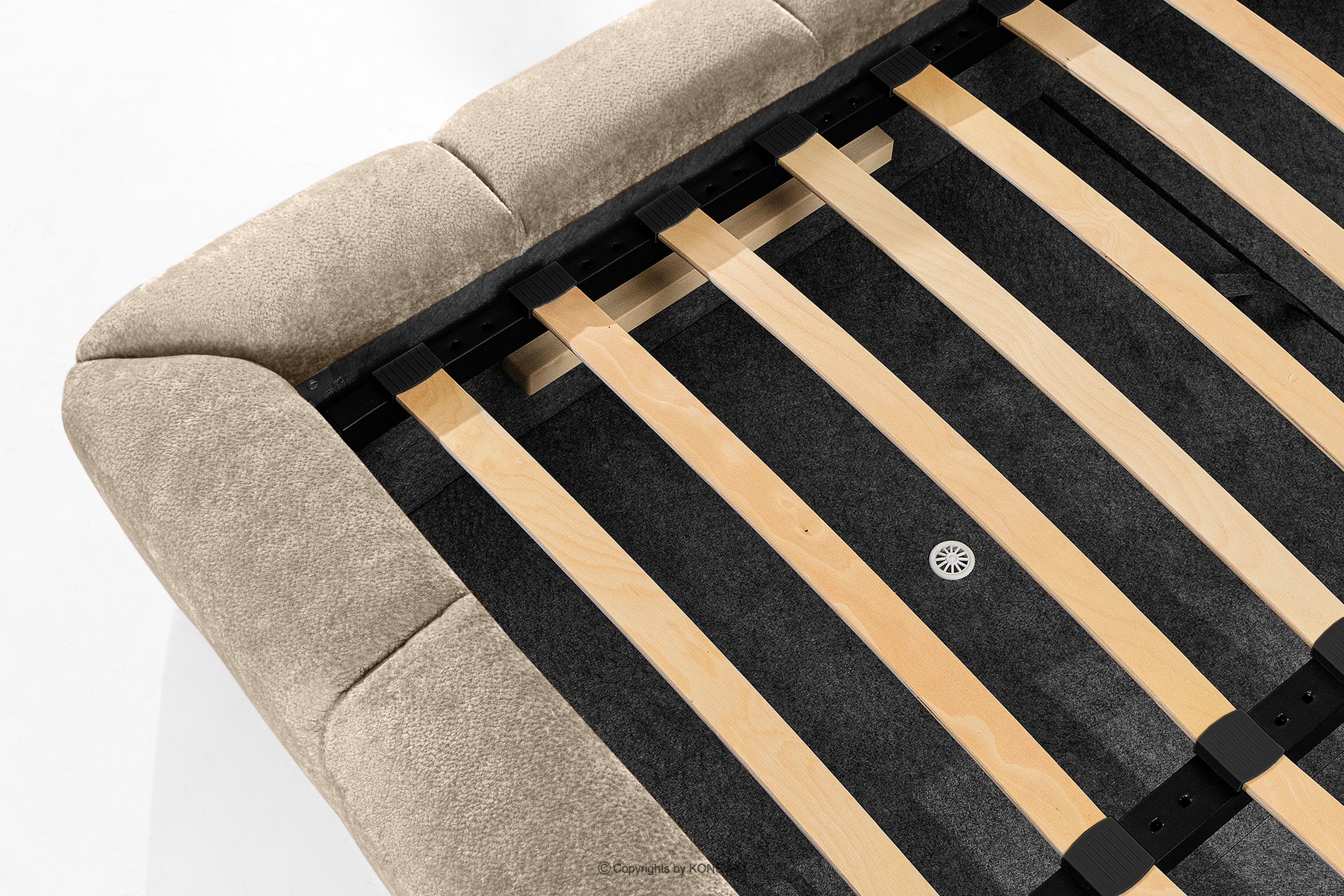produktu Čalúnená posteľ 200 cm v štýle Japandi so sivobéžovým prešívaním
