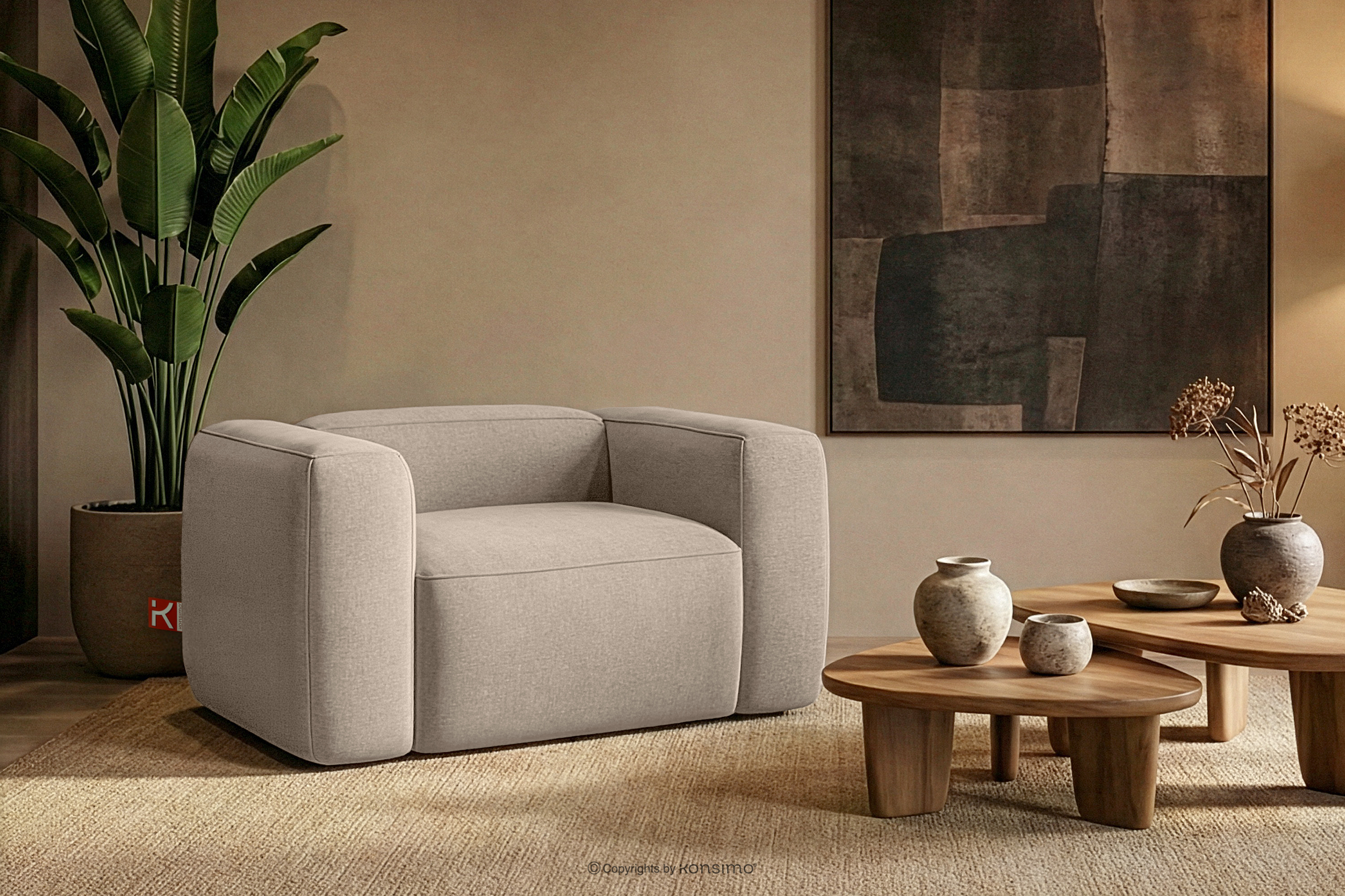 FUBBO Objav celú kolekciu Mäkké kreslo z tkanej látky krémový- farba krémová