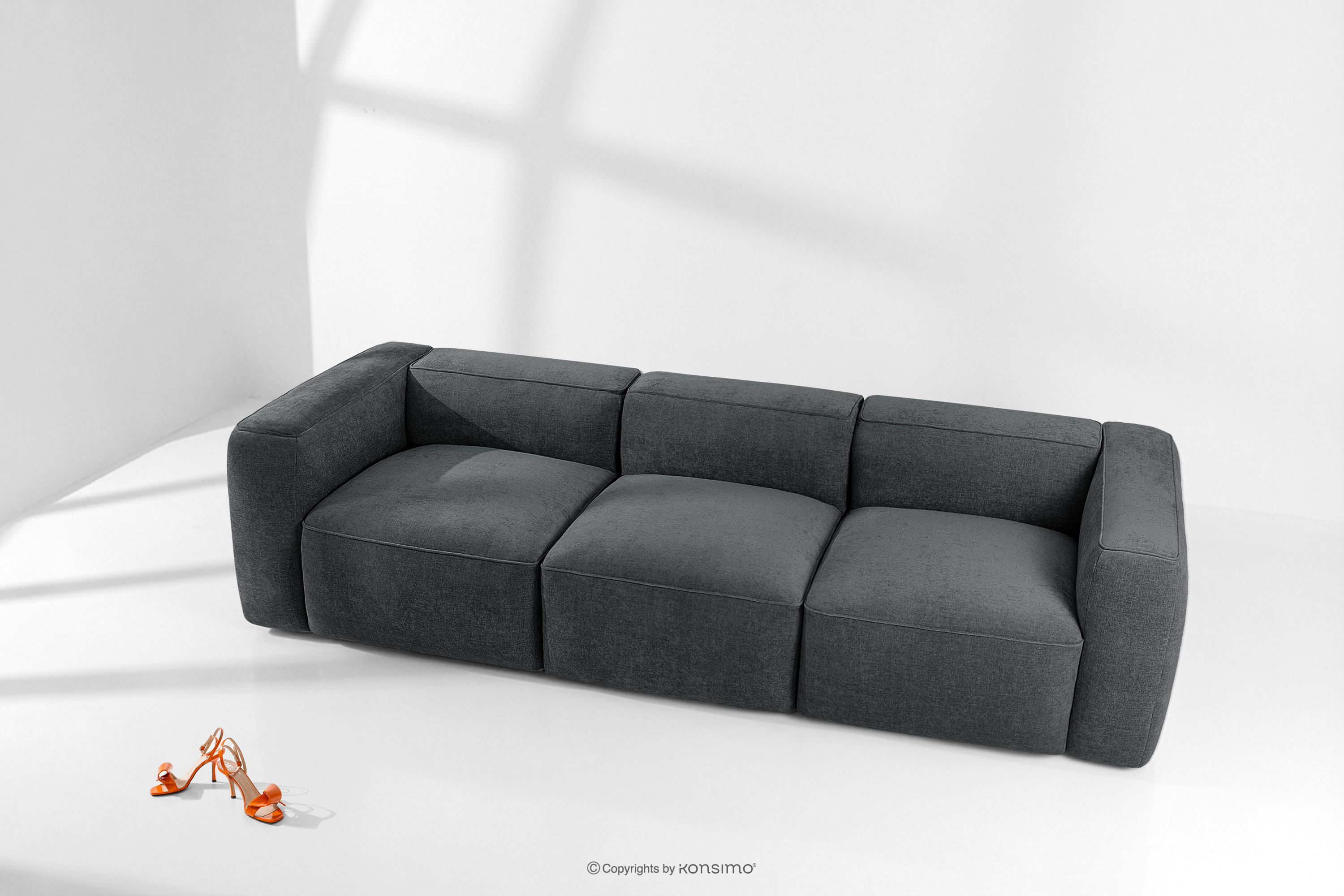 FUBBO Objav celú kolekciu Mäkká trojmiestna pohovka z tkanej látky antracit- farba antracitová