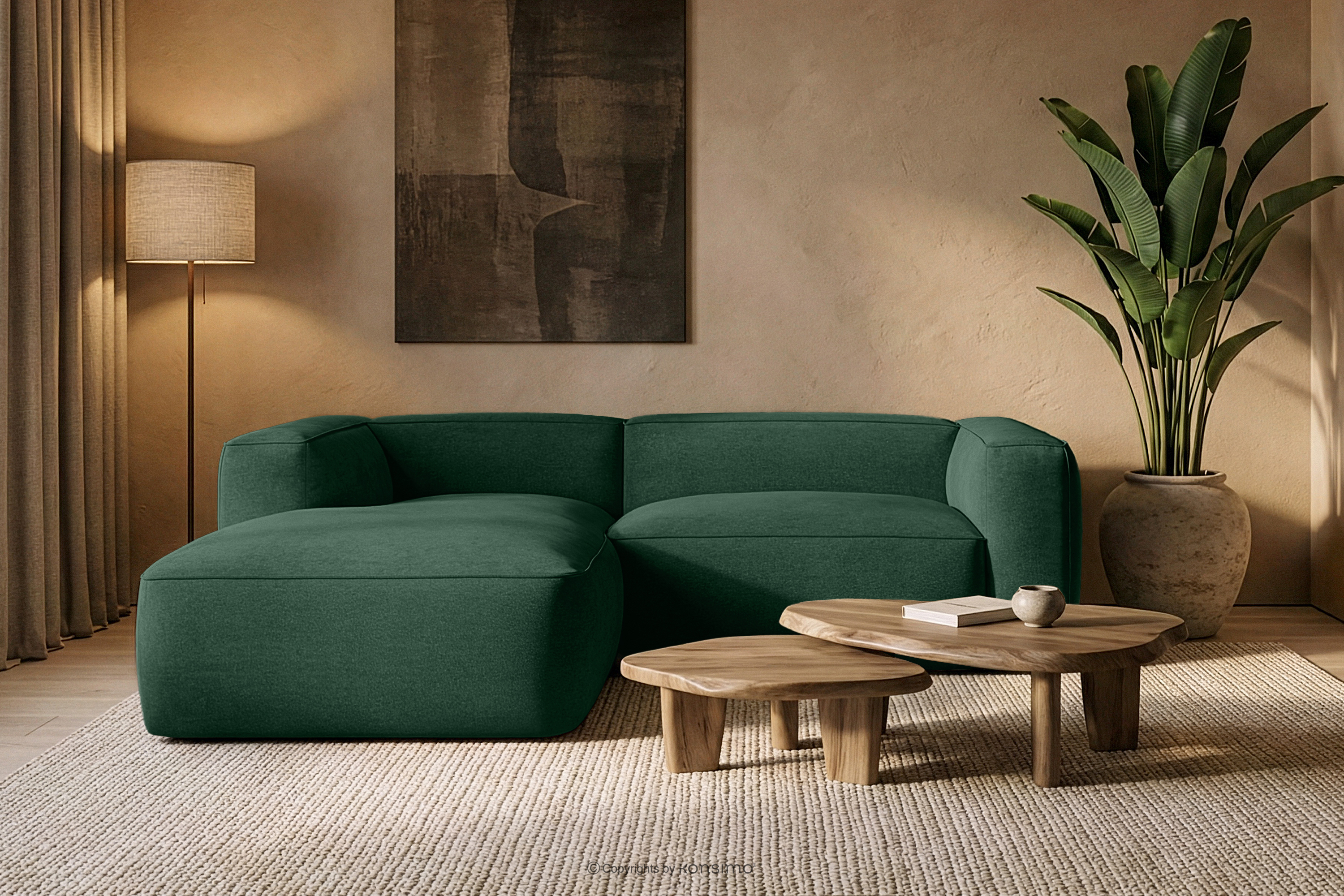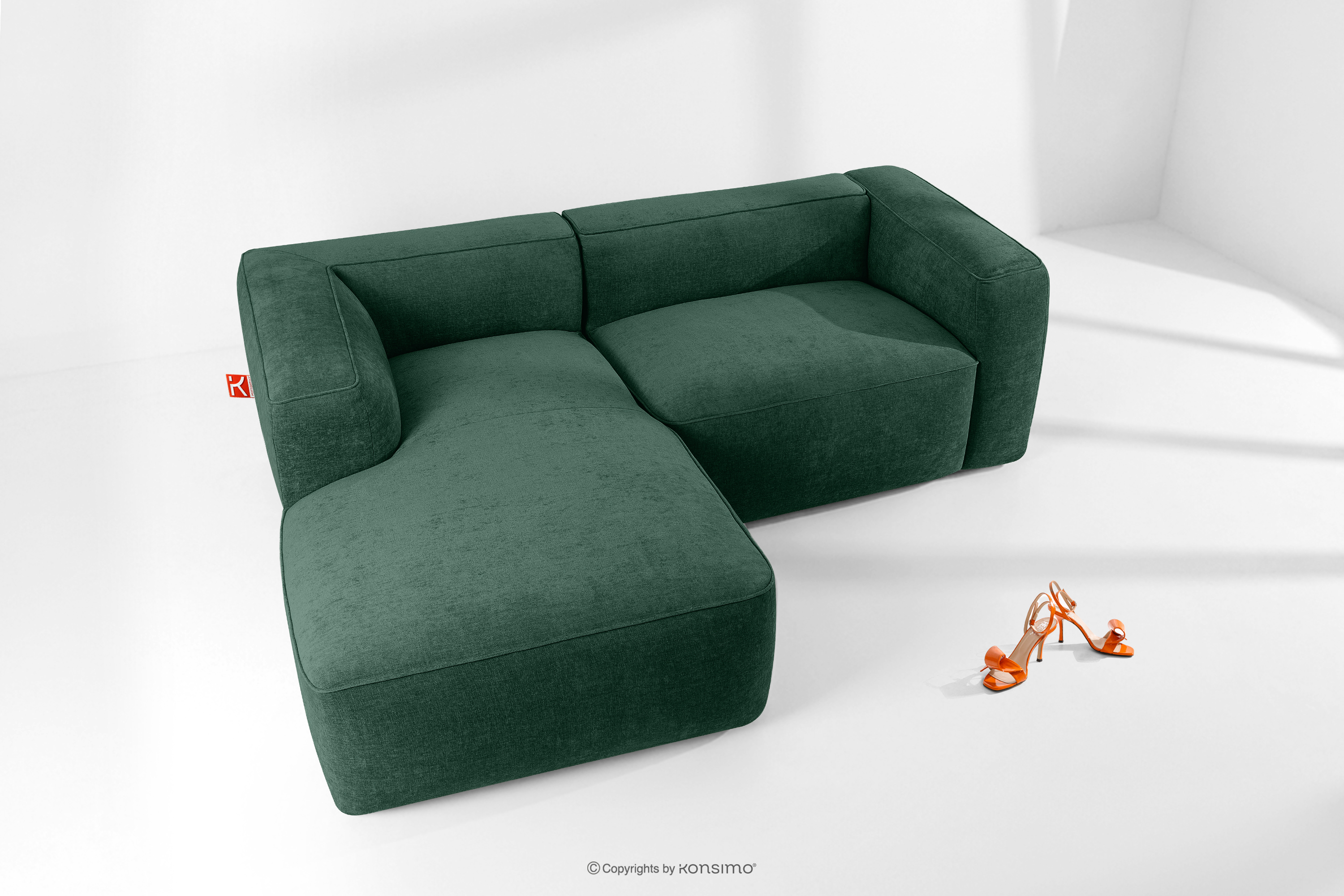 FUBBO Objav celú kolekciu Mäkká rohová pohovka z tkanej látky, vľavo tmavo zelená- farba tmavozelená
