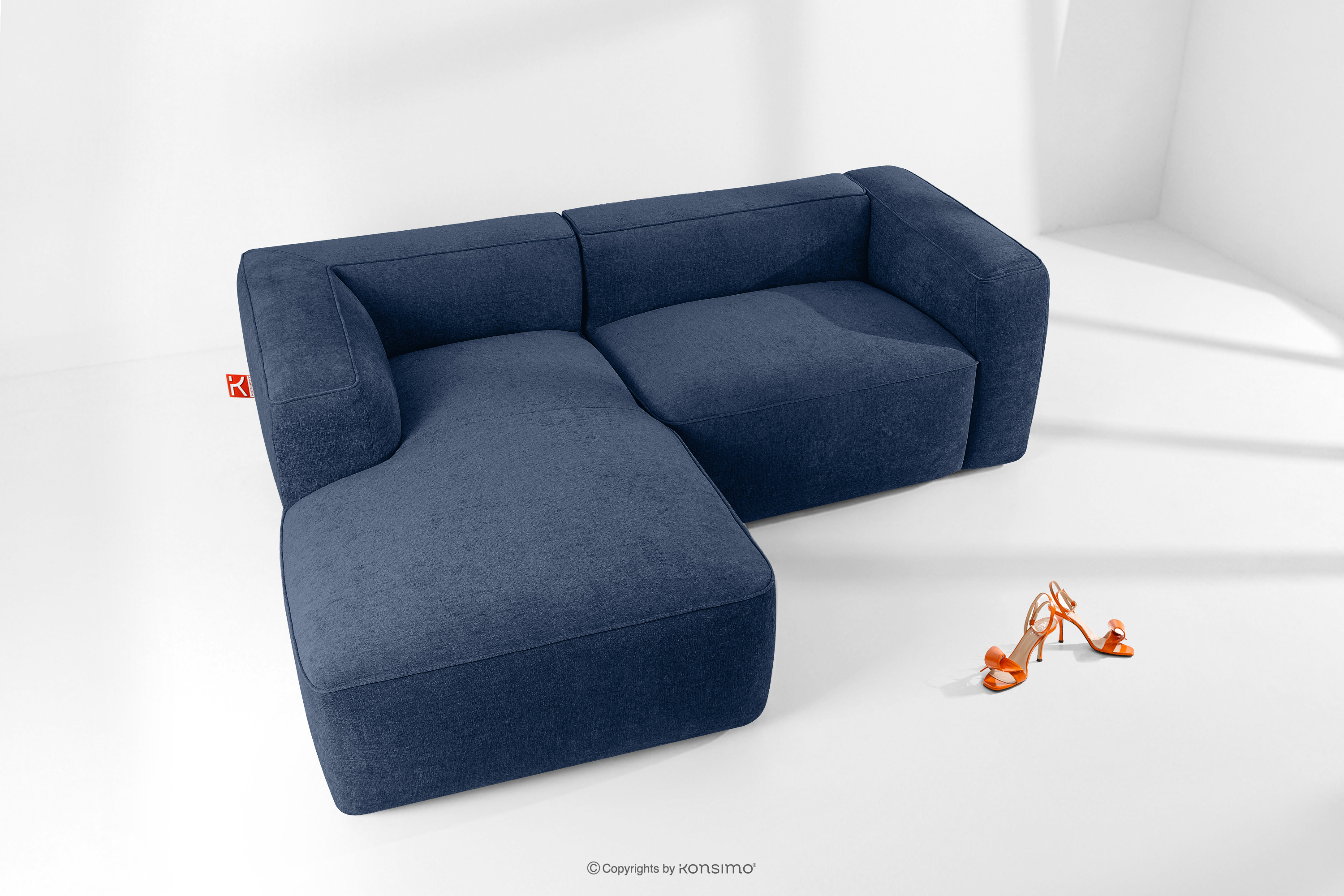 FUBBO Objav celú kolekciu Mäkká rohová pohovka z tkanej látky, vľavo námornícka modrá- farba námornícka modrá