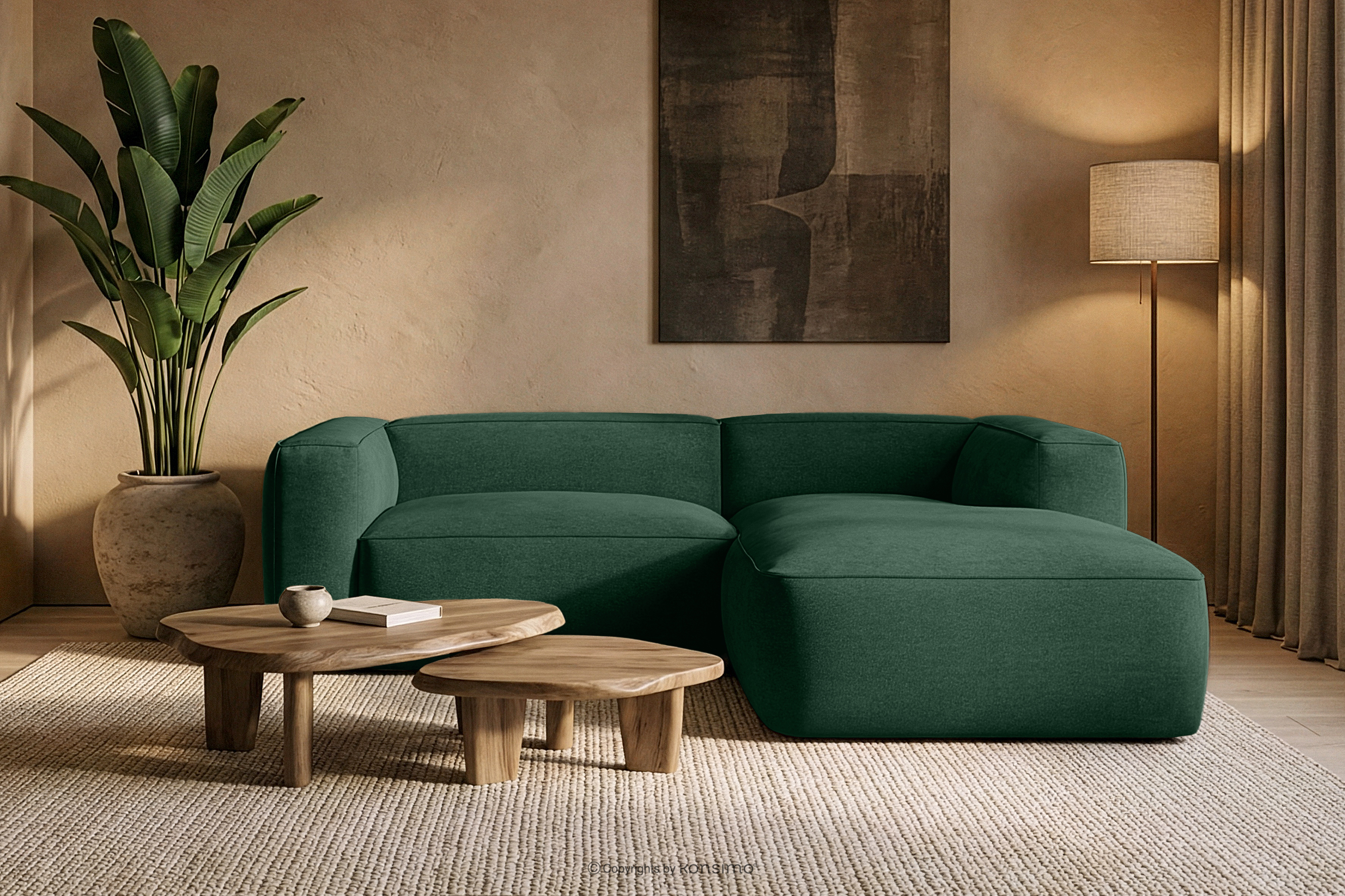 FUBBO Objav celú kolekciu Mäkká rohová pohovka z tkanej látky vpravo tmavo zelená- farba tmavozelená