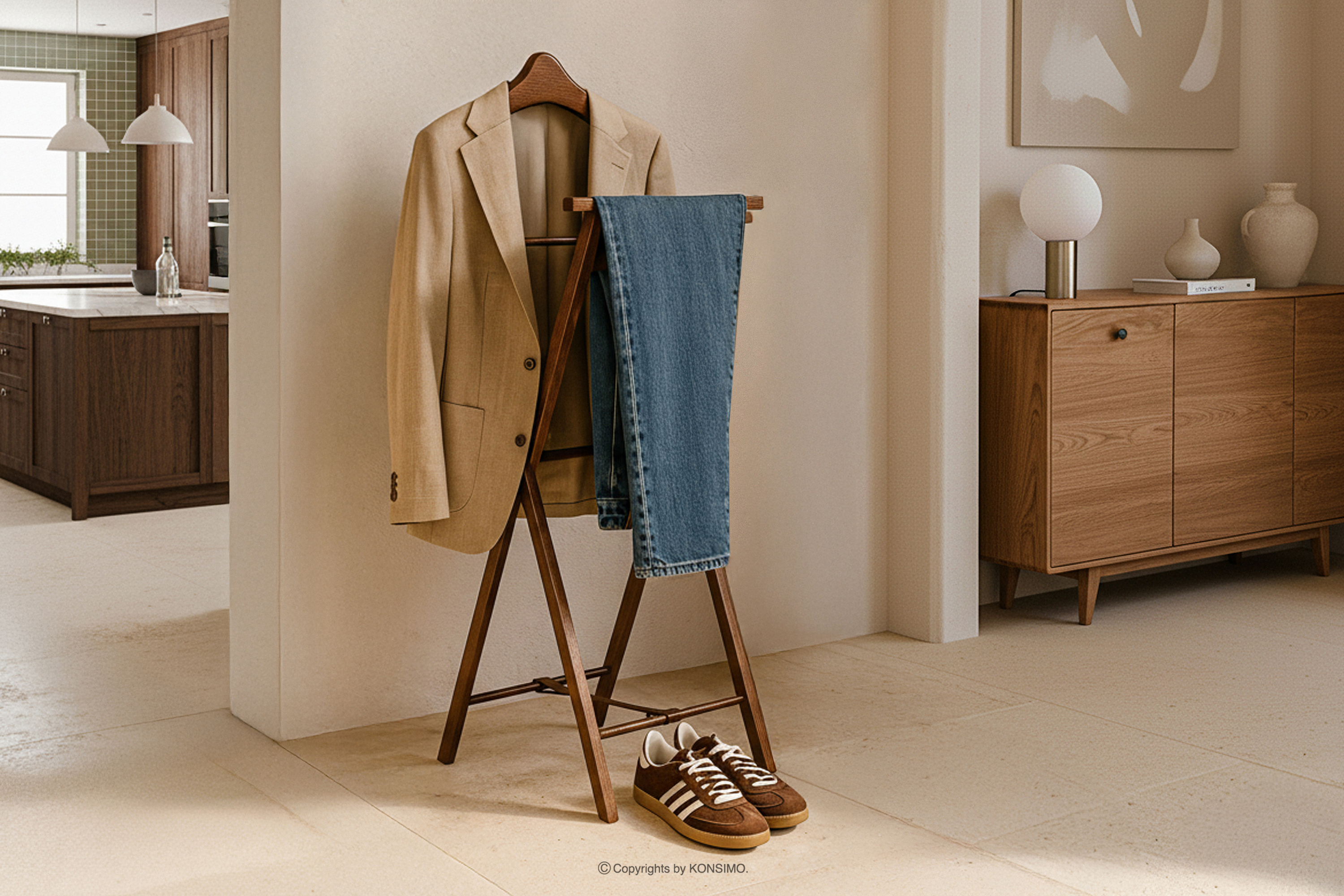 Hnedý vešiak na odevy z bukového dreva tento produkt bol navrhnutý pre najnáročnejších používateľov. Je ideálny do spální, šatní a elegantných predsiení, kde plní nielen praktickú, ale aj dekoratívnu funkciu. Stojan na kabáty je vyrobený z vysoko kvalitného bukového dreva, ktoré je cenené pre svoju odolnosť, odolnosť voči mechanickému poškodeniu a jemný, prirodzený vzhľad.