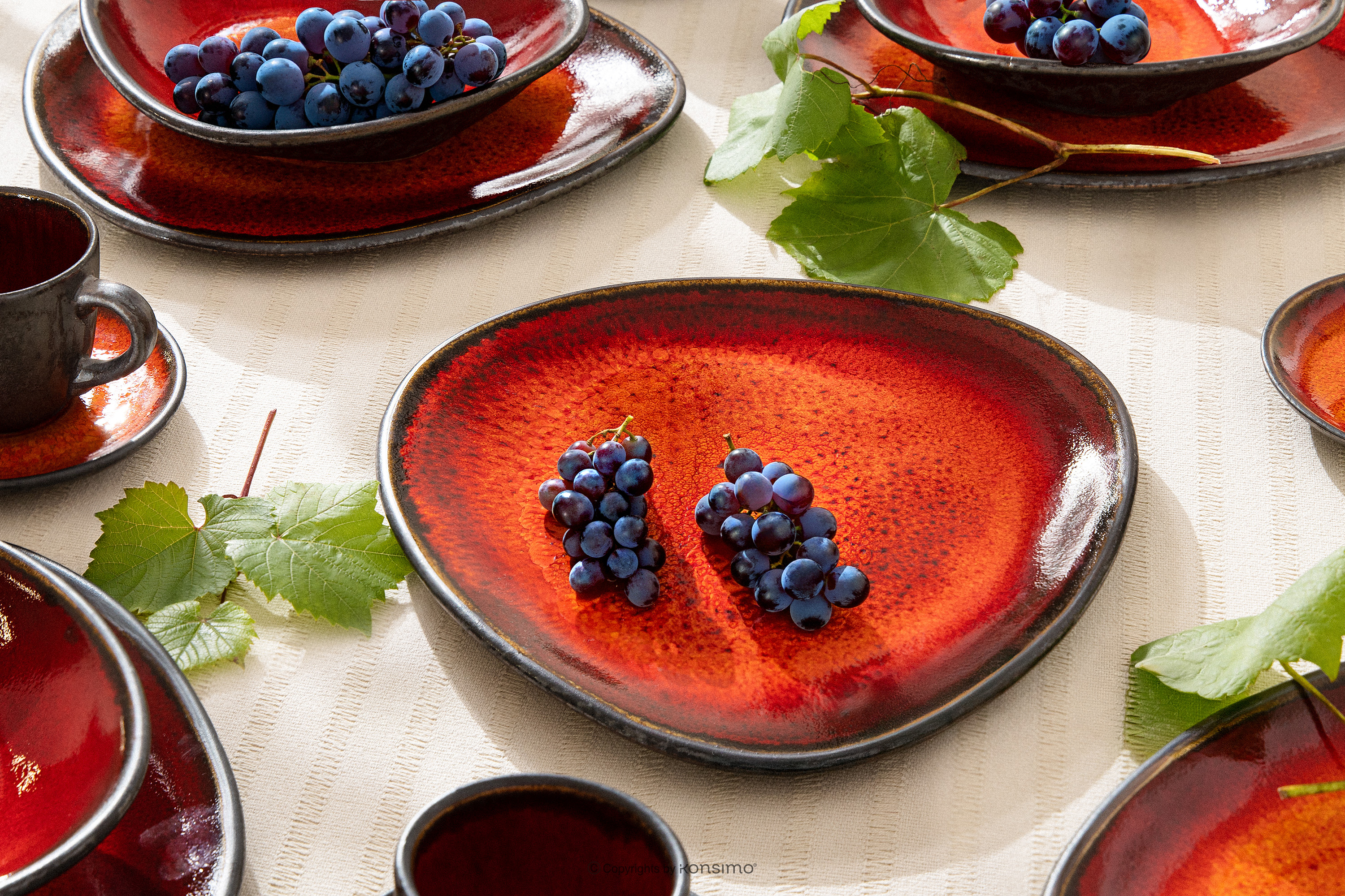 PRIMA Objav celú kolekciu Ručne glazovaný červená jedálenský tanier- farba červená