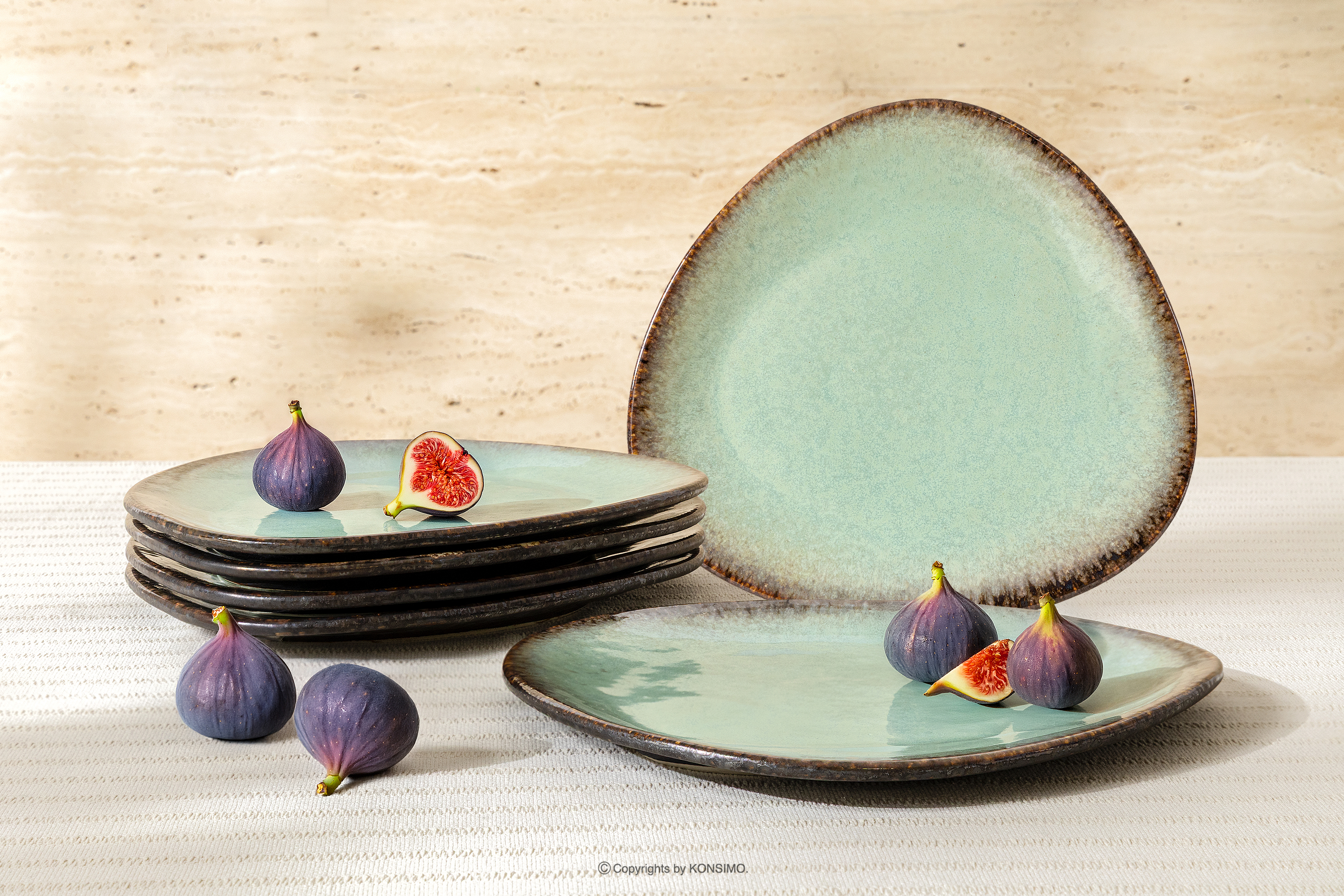 produktu Ručne glazovaný keramický jedálenský tanier 6 kusov šalviová farba