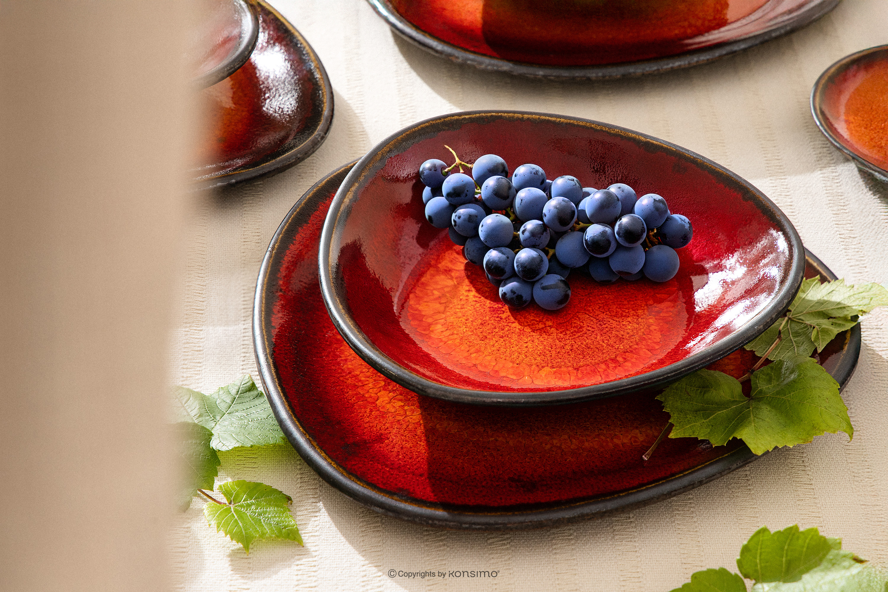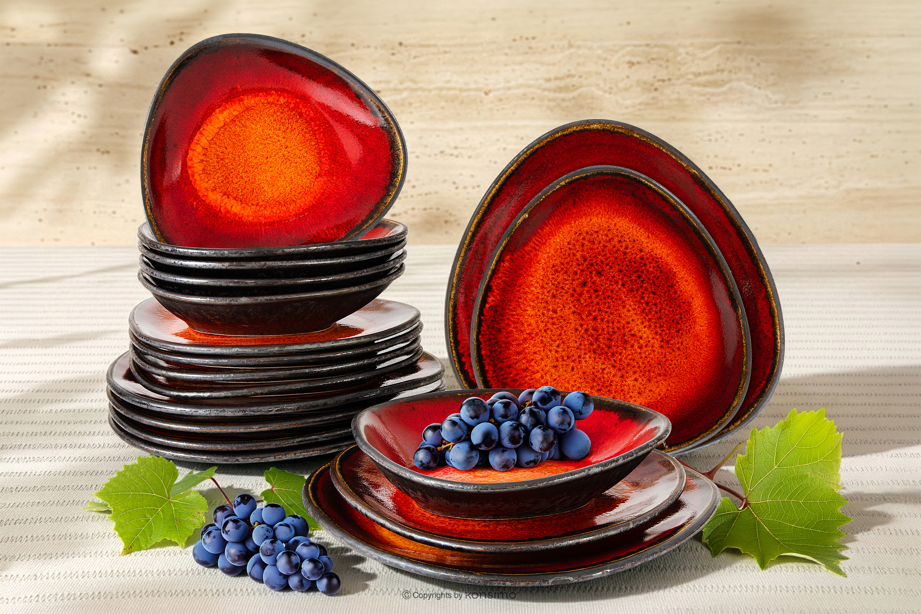 produktu Ručne glazovaná jedálenská súprava pre 6 osôb (18 ks) červená