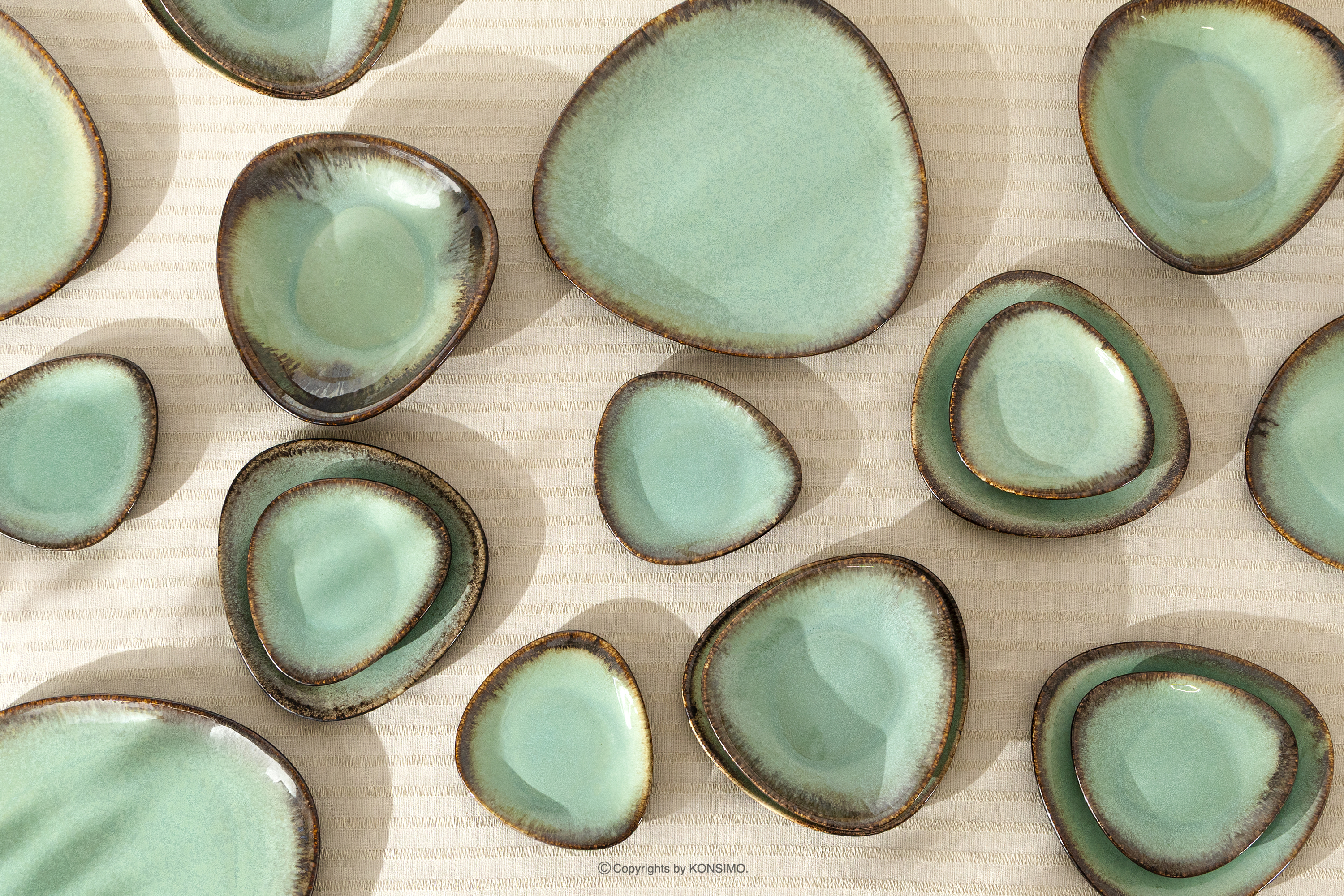 PRIMA Objav celú kolekciu Jedálenský servis v štýle loft pre 6 osôb (18 ks) šalviová farba- farba šalviová farba