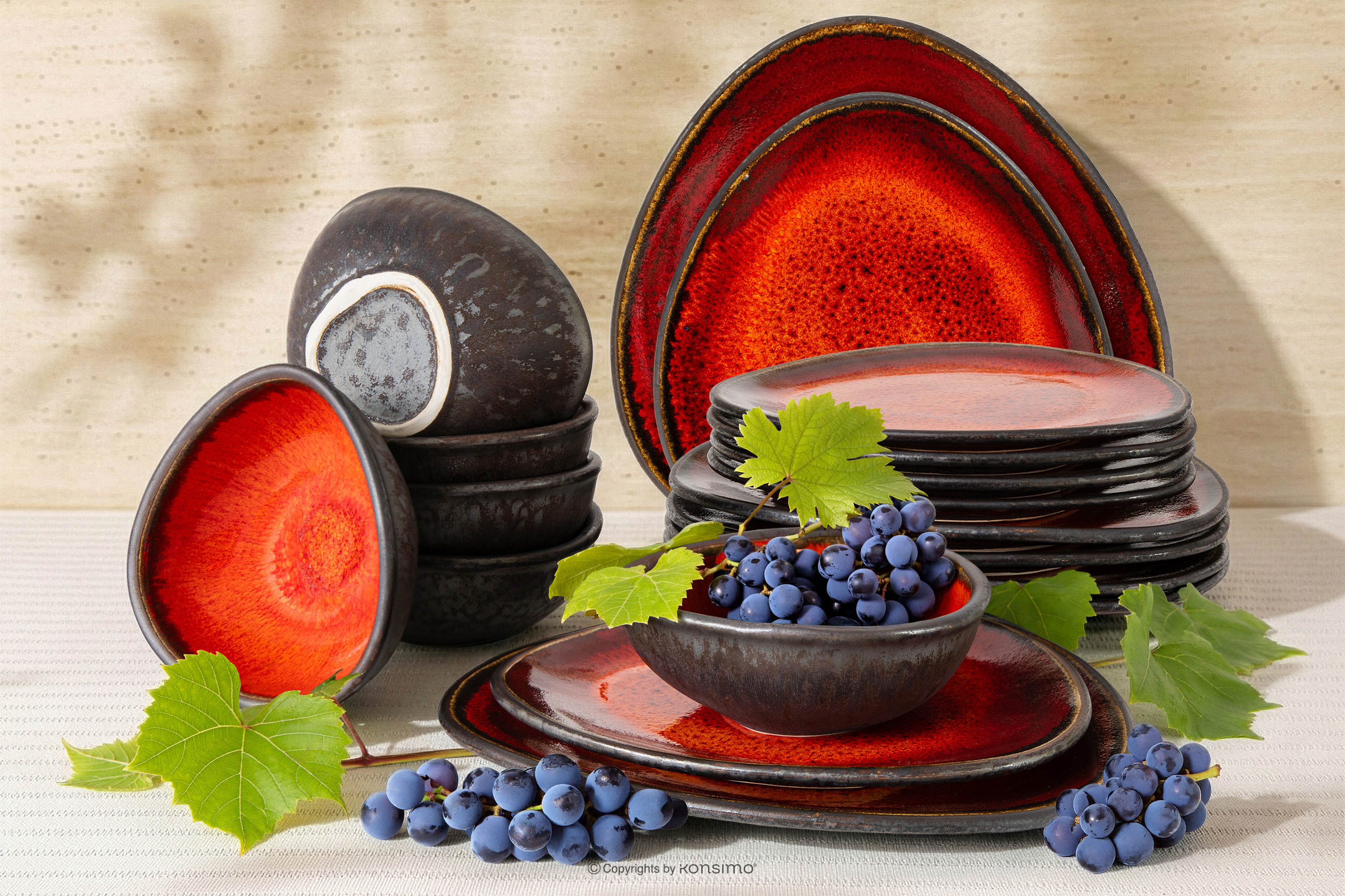 Jedálenský servis v štýle loft pre 6 osôb (18 ks) červená – esencia surovej krásy a modernej elegancie, zakomponovaná do funkčnej keramiky. Vytvorená pre tých, ktorí oceňujú autenticitu a originálny dizajn, PRIMA je poctou štýlu Loft, kde kľúčovú úlohu zohrávajú priestor, svetlo a prírodné materiály. Dominantná svetlá, smotanová béžová farba je farbou zeme, piesku a prírodného kameňa.