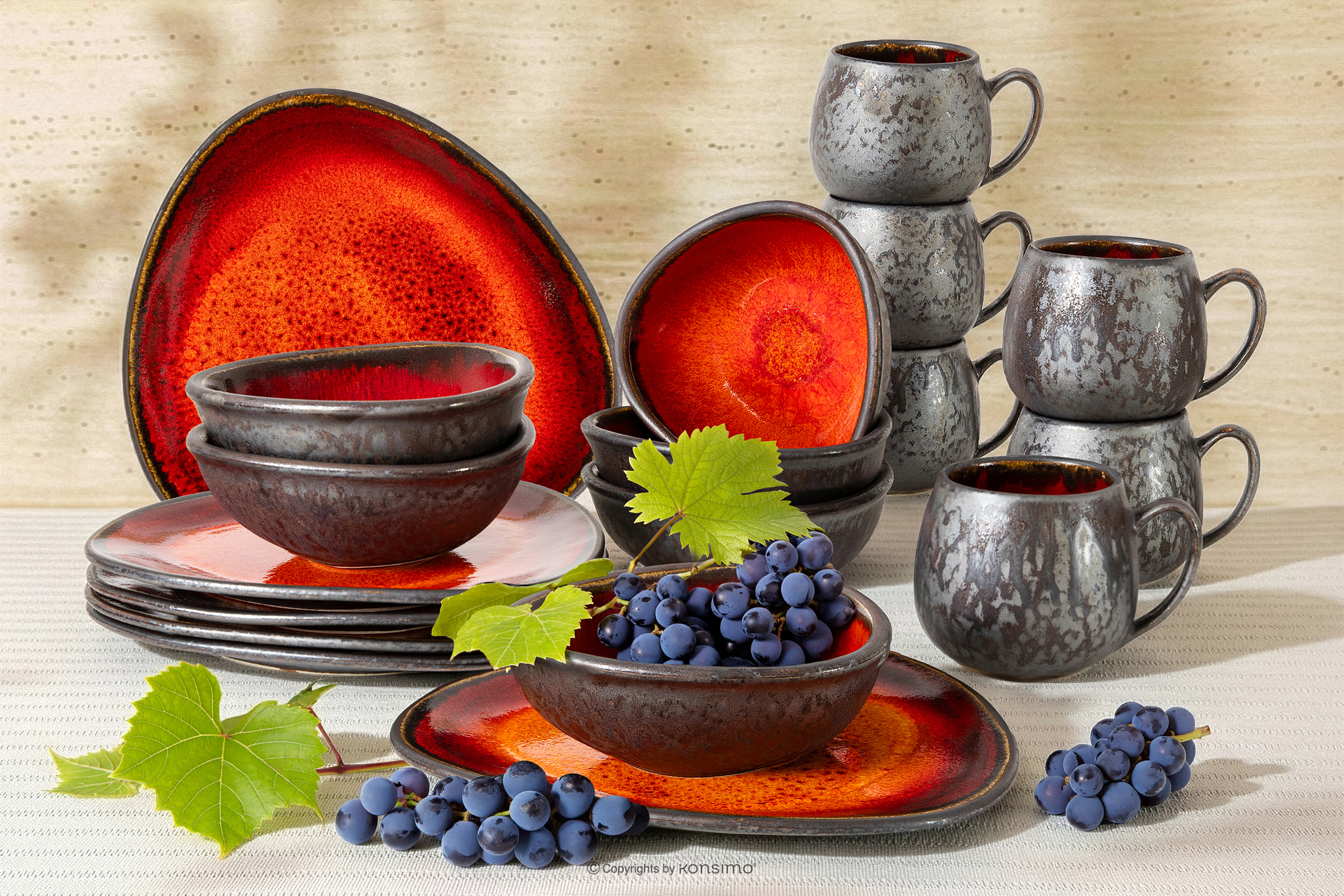 PRIMA Objav celú kolekciu Ručne glazovaná sada na raňajky pre 6 osôb (18 ks) červená- farba červená