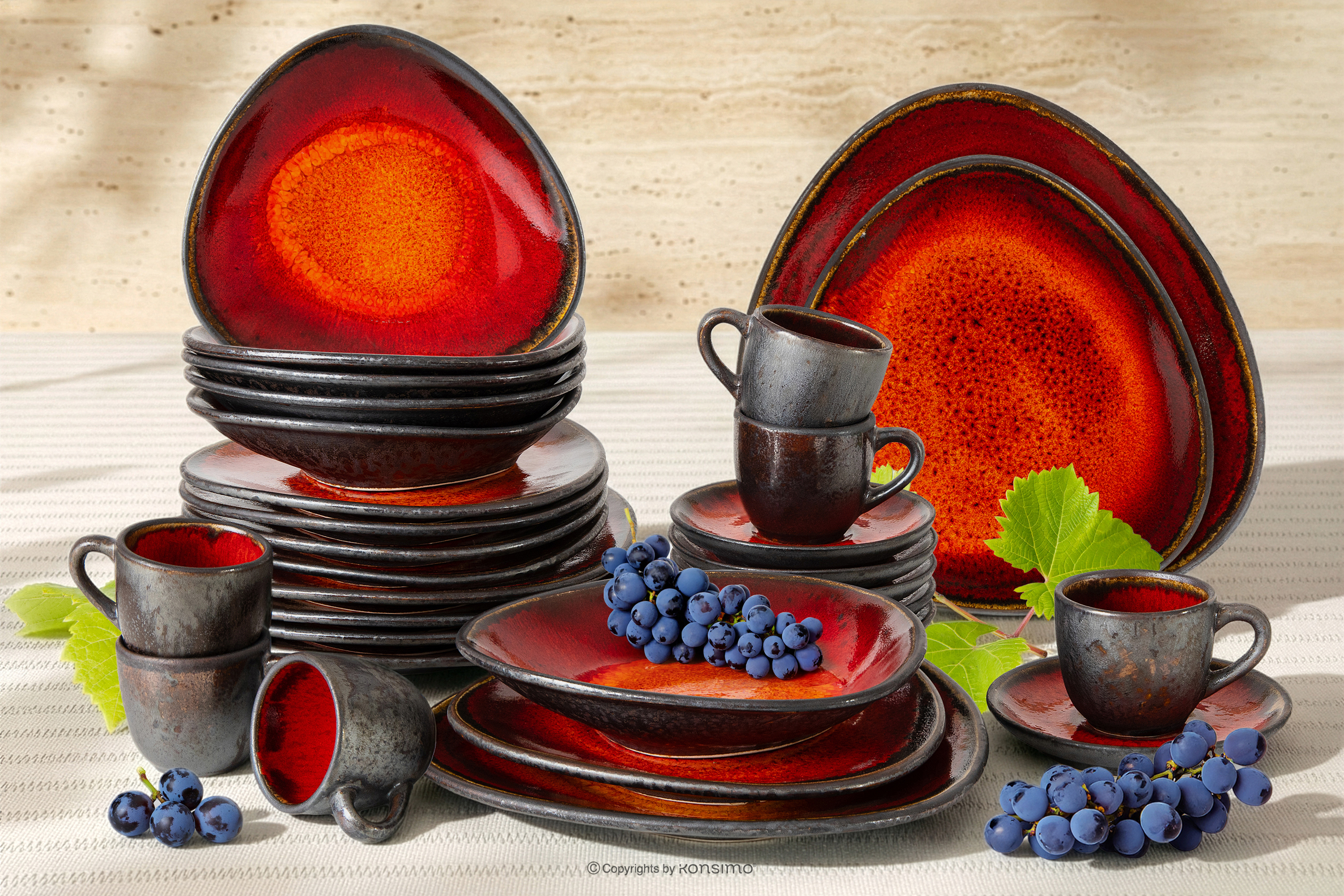 PRIMA Objav celú kolekciu Ručne glazovaná večera a kávová súprava pre 6 osôb (30 ks) červená- farba červená