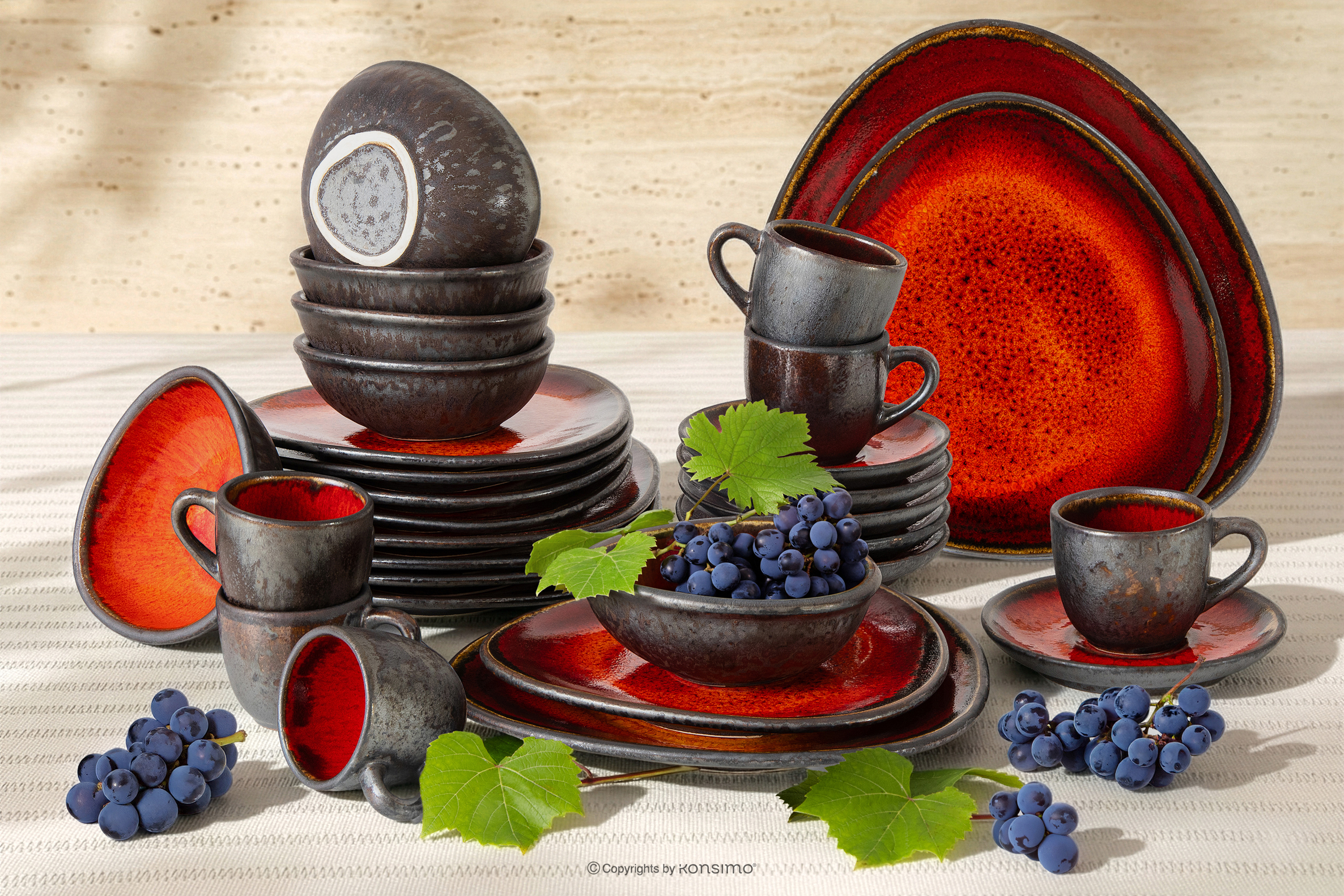 PRIMA Ručne glazovaná keramická večera a kávová súprava pre 6 osôb (30 ks) červená