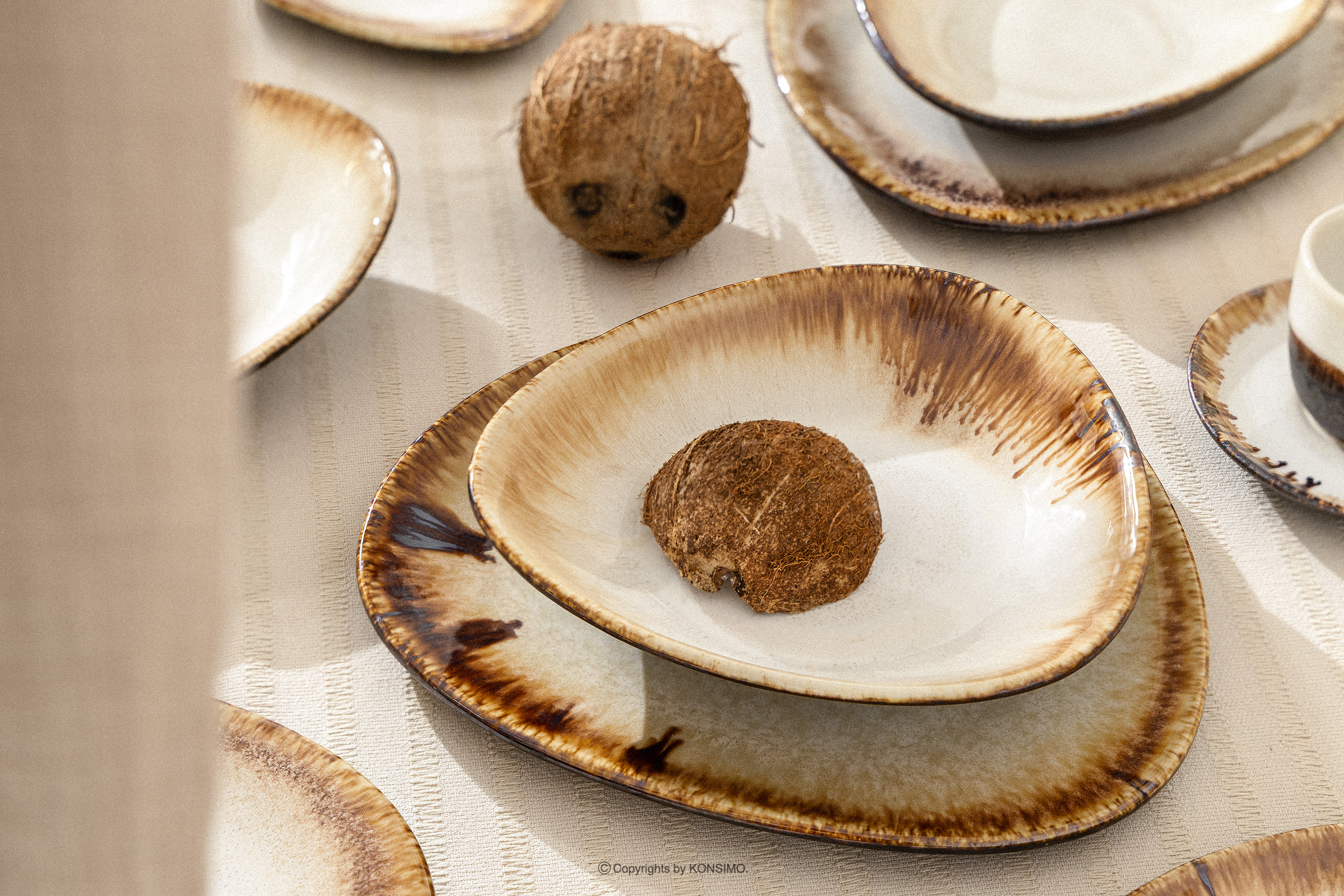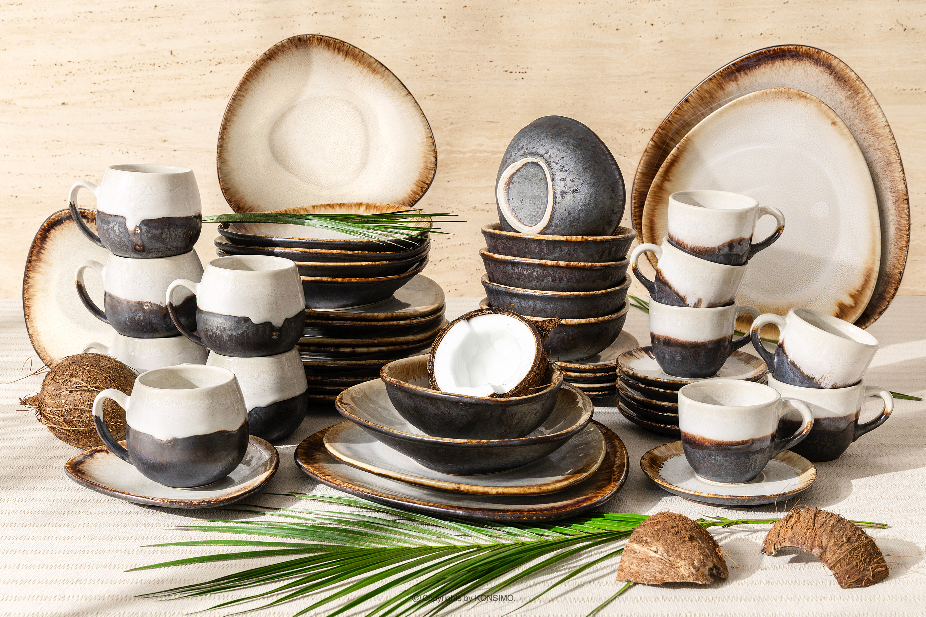PRIMA Objav celú kolekciu Ručne glazovaná keramická večera raňajky a káva pre 6 osôb (48 ks) svetlo béžová- farba svetlo béžová