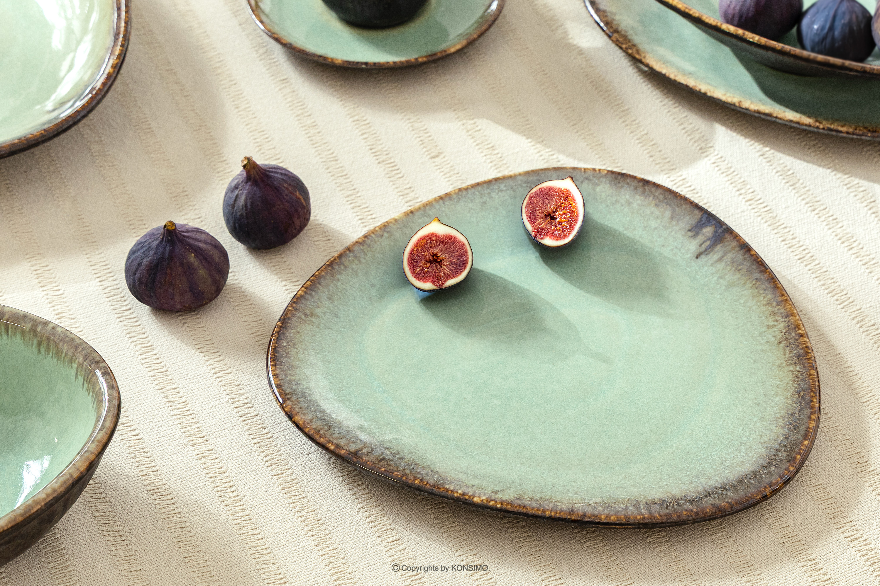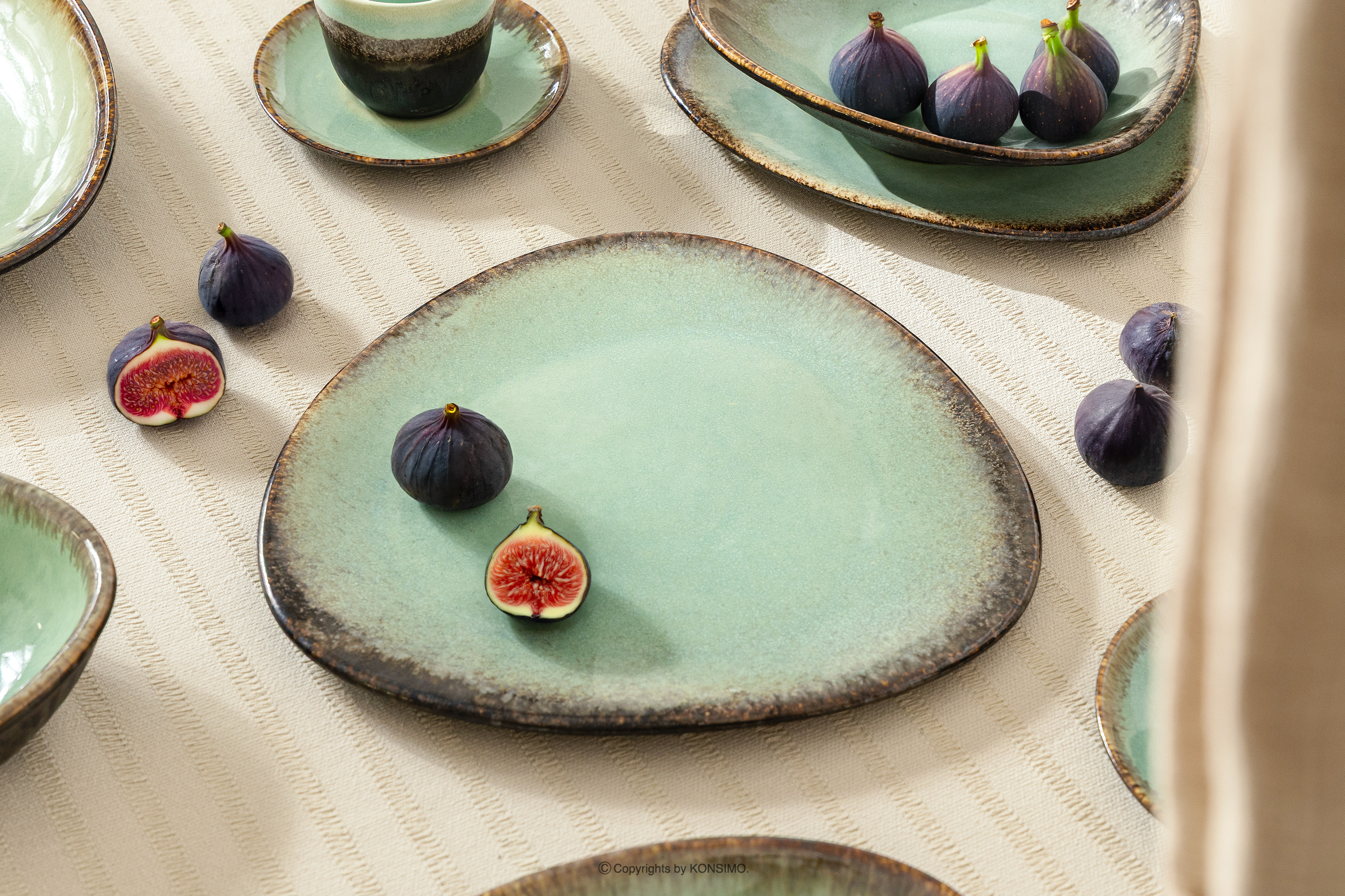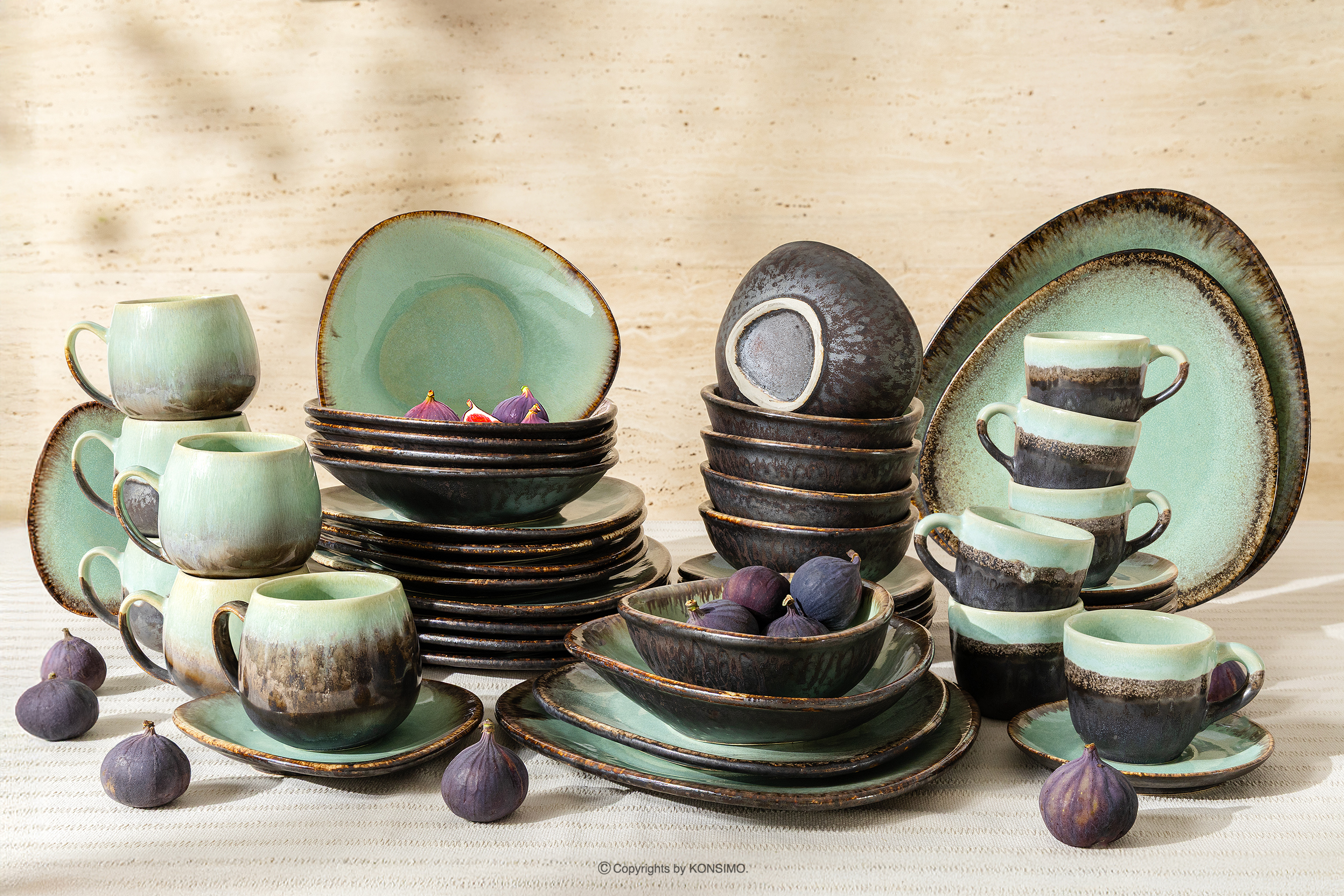 PRIMA Objav celú kolekciu Ručne glazovaná keramická večera raňajky a káva pre 6 osôb (48 ks) šalviová farba- farba šalviová farba