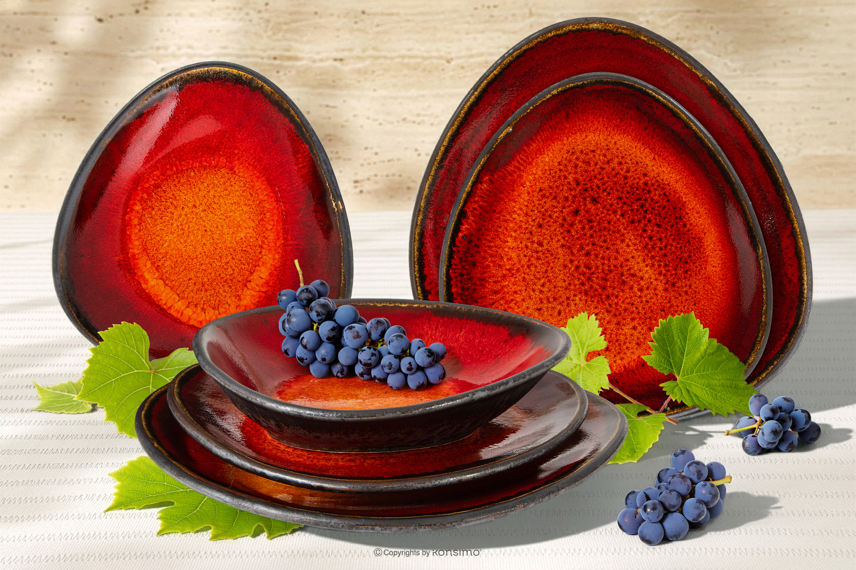 PRIMA Objav celú kolekciu Ručne glazovaná súprava na večeru pre 2 osoby (6 ks ) červená- farba červená