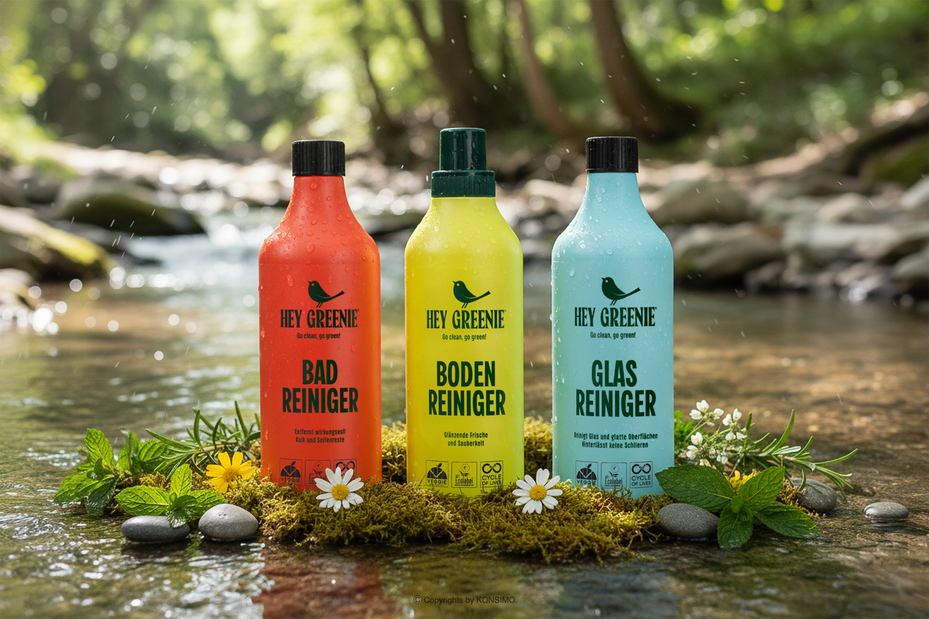 HEY GREENIE Ekologická čistiaca sada – čistiaci prostriedok na podlahy, kúpeľne a sklo (3 ks)