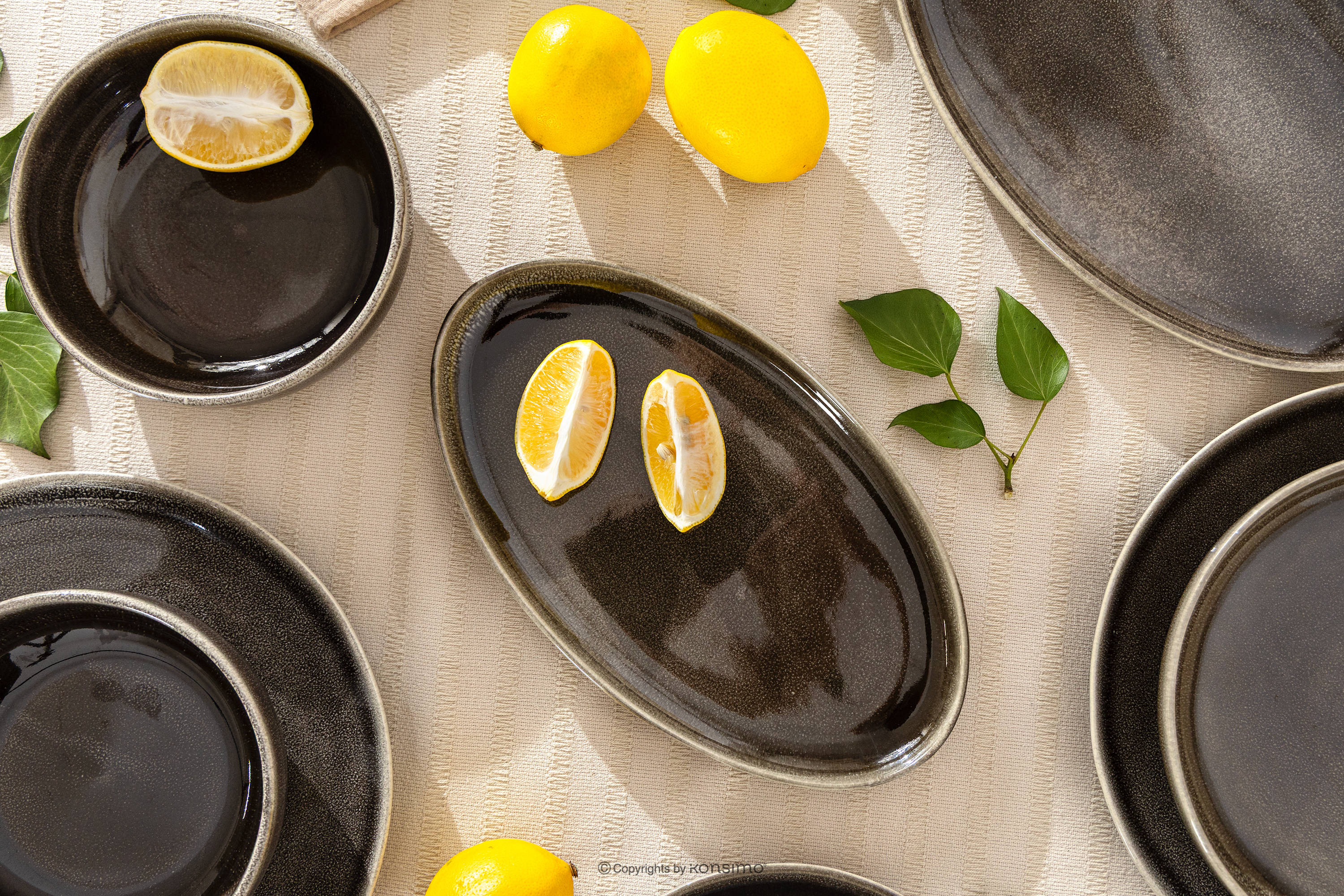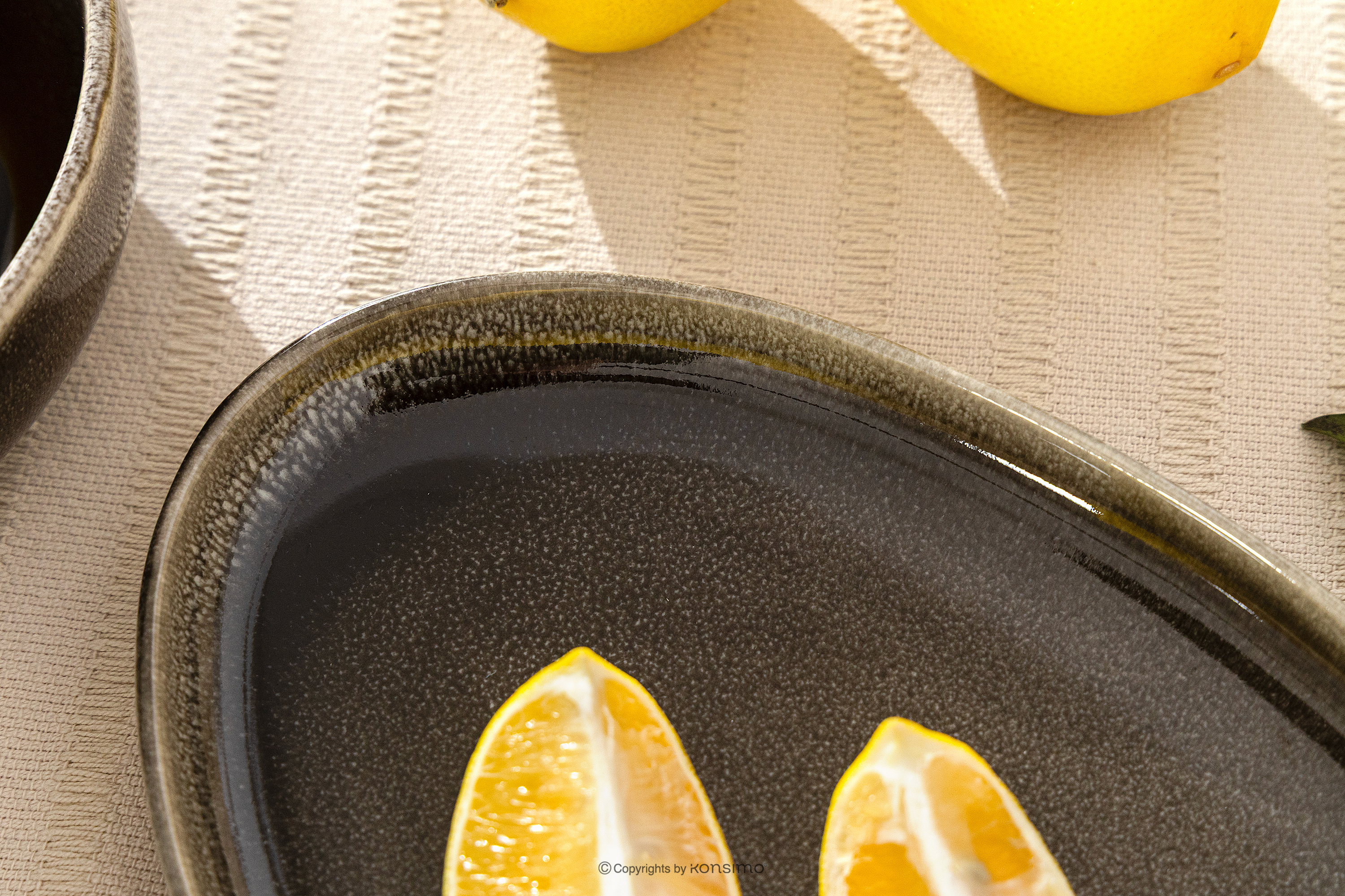 Keramický servírovací tanier v rustikálnom štýle hnedá/sivá/béžová navrhnuté s ohľadom na odolnosť, pohodlie a dlhotrvajúcu krásu. Každý kus je vytvorený pomocou procesu, ktorý kombinuje tradičné remeselné zručnosti s modernými spracovateľskými technikami, vďaka čomu je riad vysoko odolný voči každodennému používaniu. Keramika je pevná, vďaka čomu je ideálna ako na elegantné stolovanie, tak aj na každodenné rodinné jedlá.
