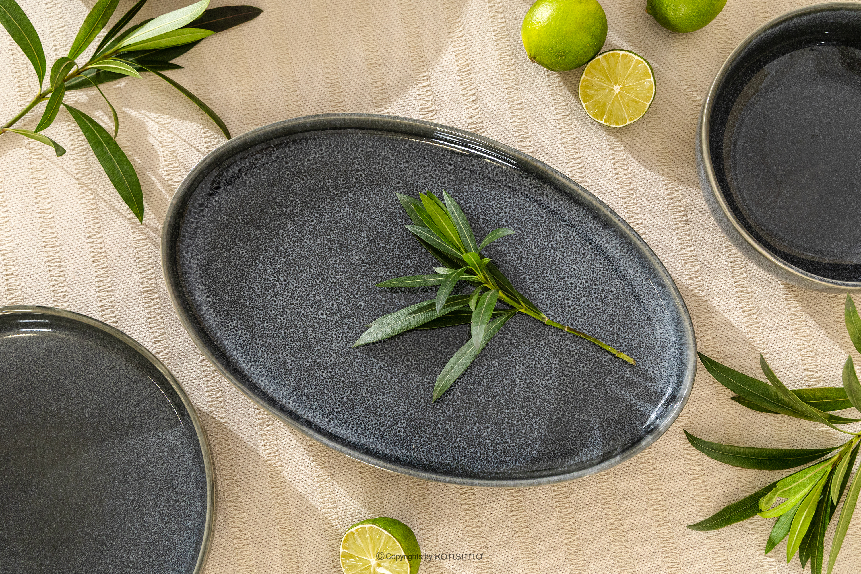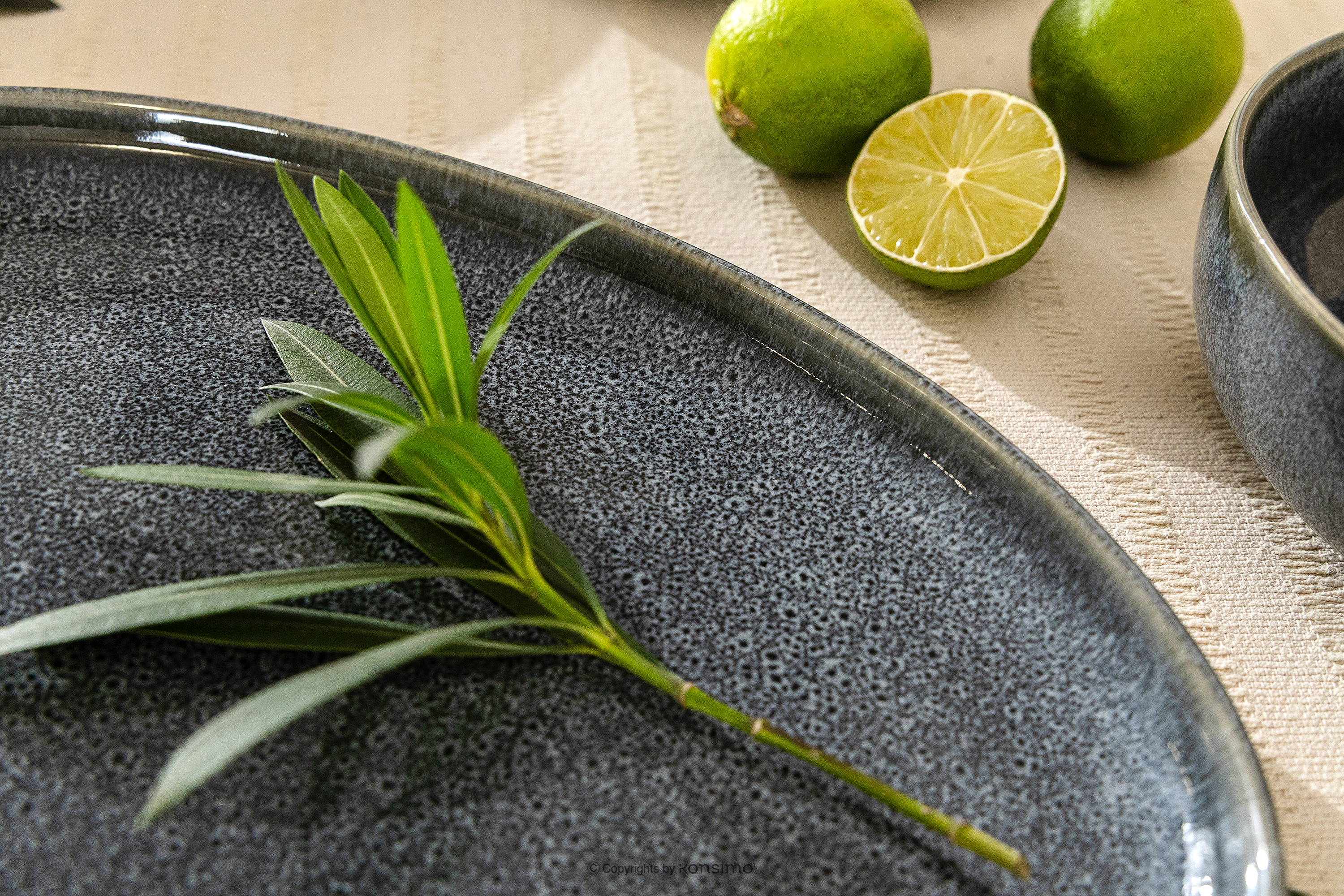 Keramický servírovací tanier v rustikálnom štýle modrá/sivá/béžová navrhnuté s ohľadom na odolnosť, pohodlie a dlhotrvajúcu krásu. Každý kus je vytvorený pomocou procesu, ktorý kombinuje tradičné remeselné zručnosti s modernými spracovateľskými technikami, vďaka čomu je riad vysoko odolný voči každodennému používaniu. Keramika je pevná, vďaka čomu je ideálna ako na elegantné stolovanie, tak aj na každodenné rodinné jedlá.