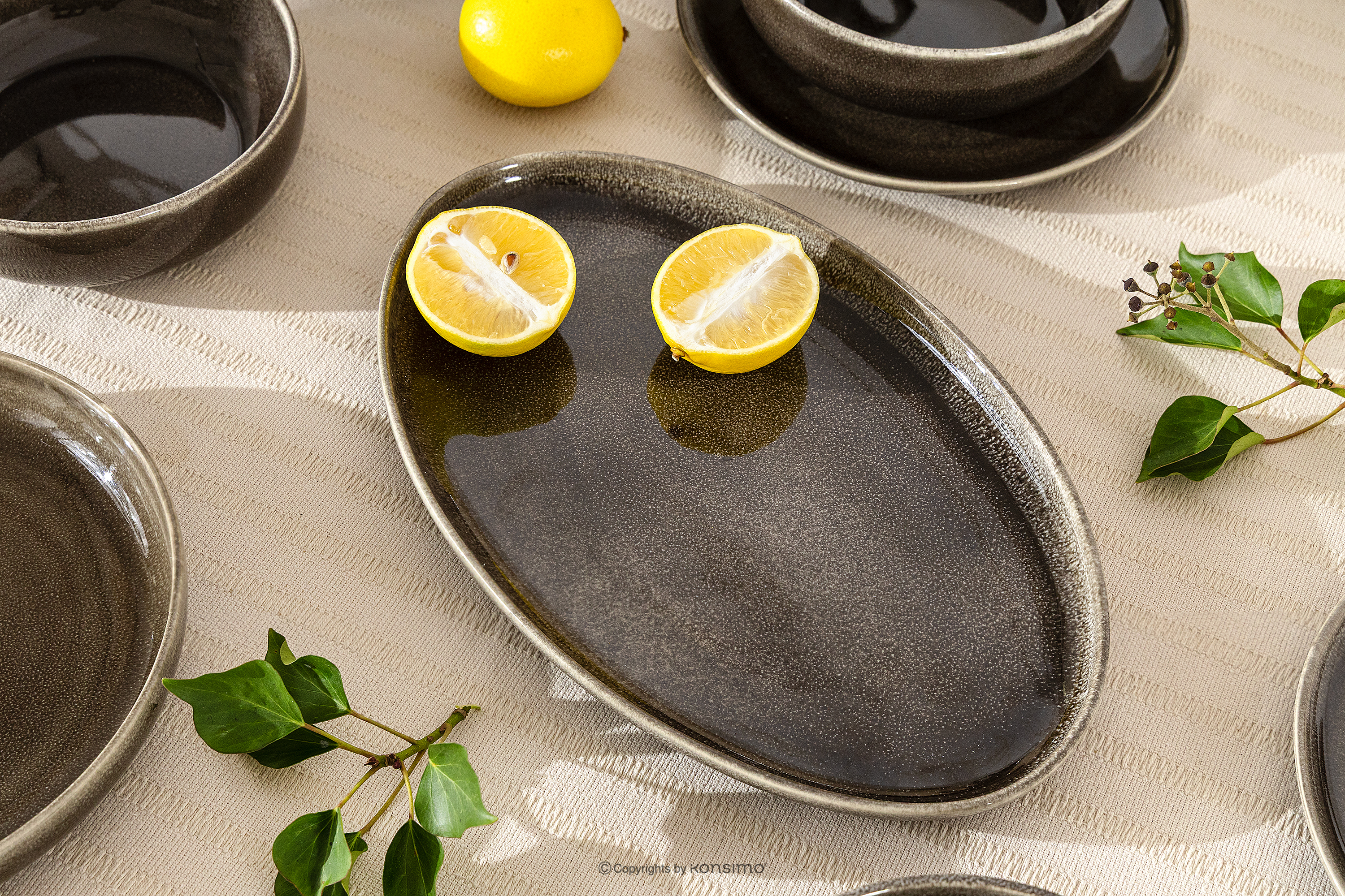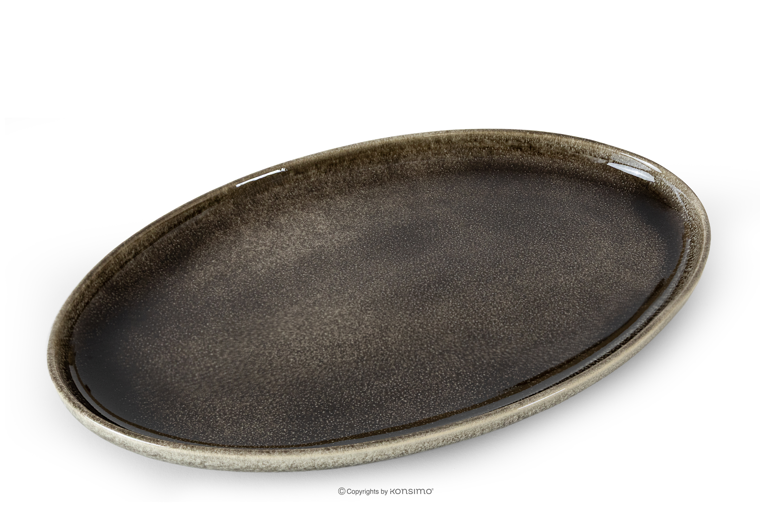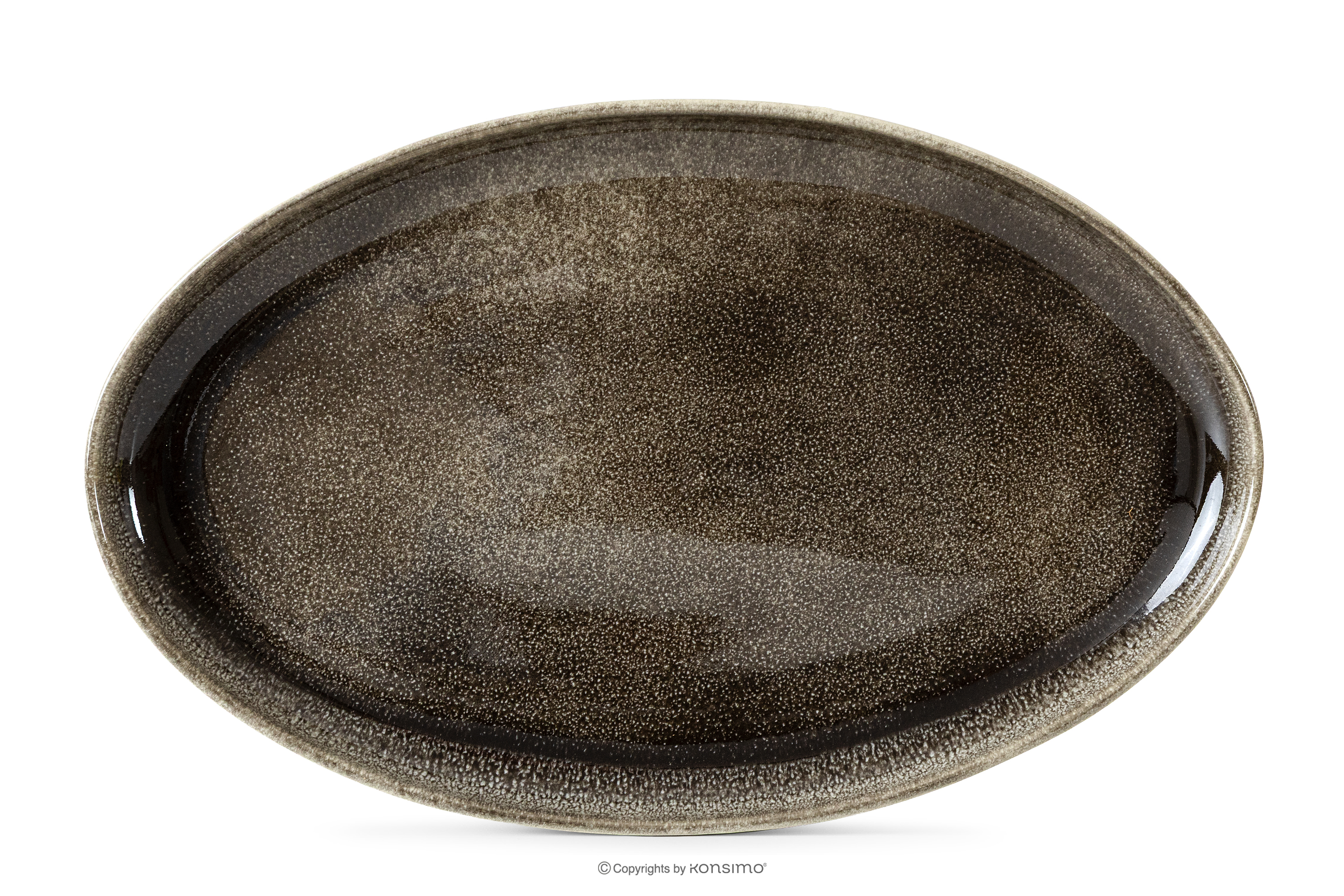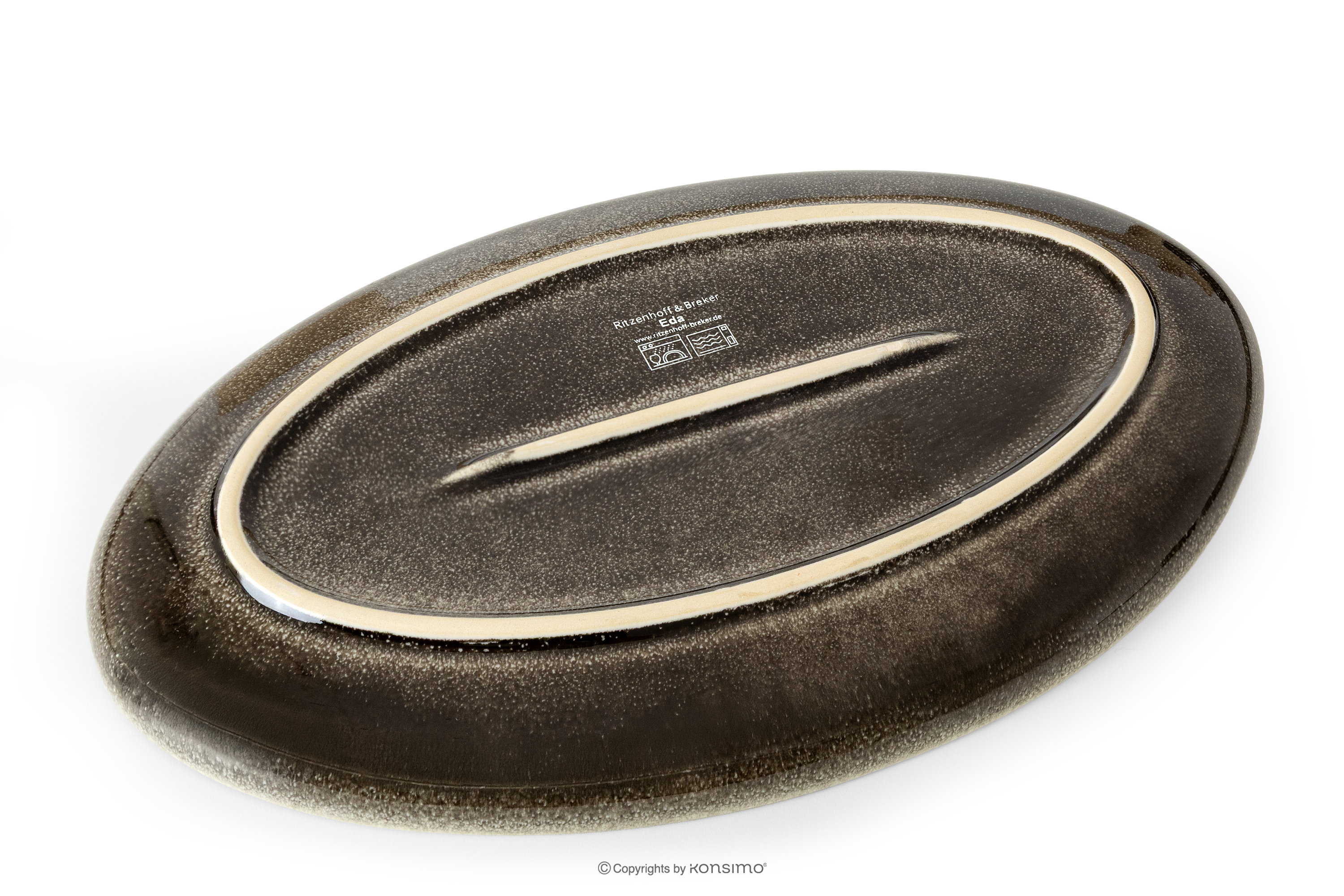 Keramický servírovací tanier v rustikálnom štýle hnedá/sivá/béžová EDA - farba hnedá/sivá/béžová
