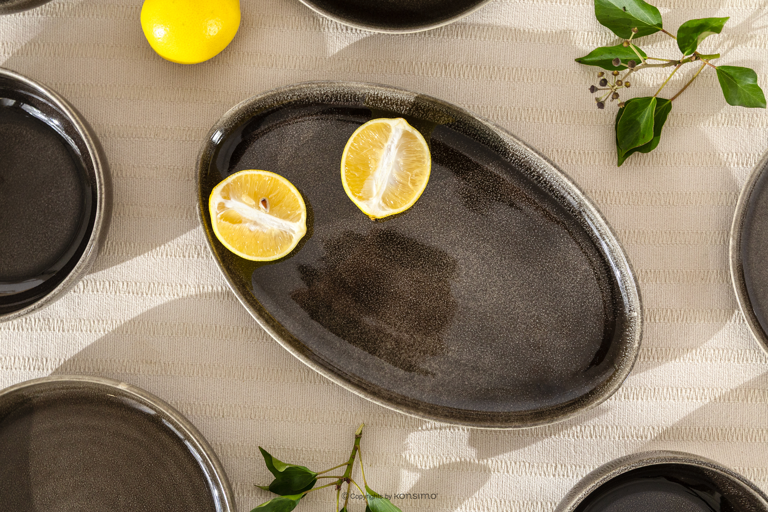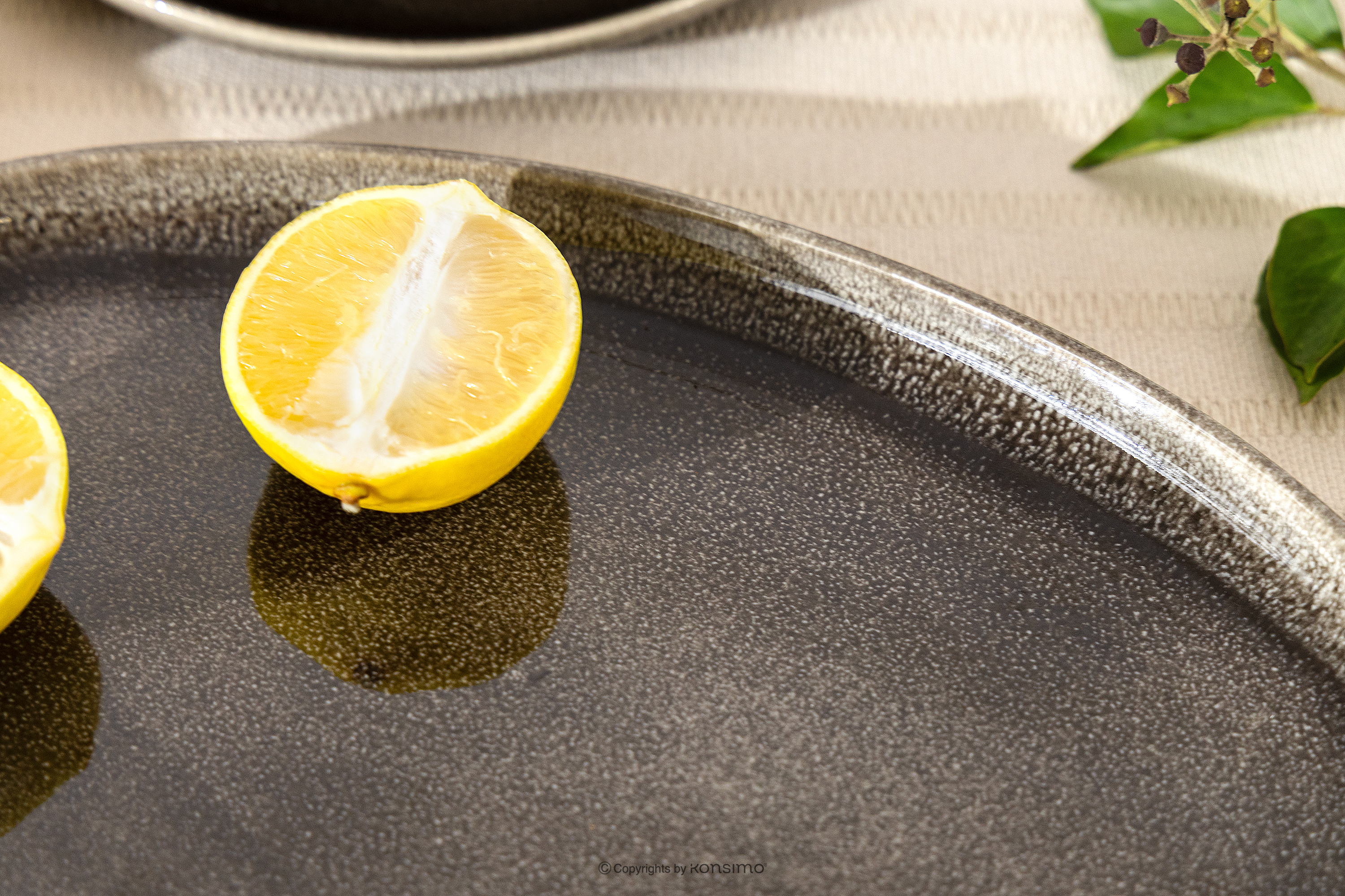 Keramický servírovací tanier v rustikálnom štýle hnedá/sivá/béžová navrhnuté s ohľadom na odolnosť, pohodlie a dlhotrvajúcu krásu. Každý kus je vytvorený pomocou procesu, ktorý kombinuje tradičné remeselné zručnosti s modernými spracovateľskými technikami, vďaka čomu je riad vysoko odolný voči každodennému používaniu. Keramika je pevná, vďaka čomu je ideálna ako na elegantné stolovanie, tak aj na každodenné rodinné jedlá.