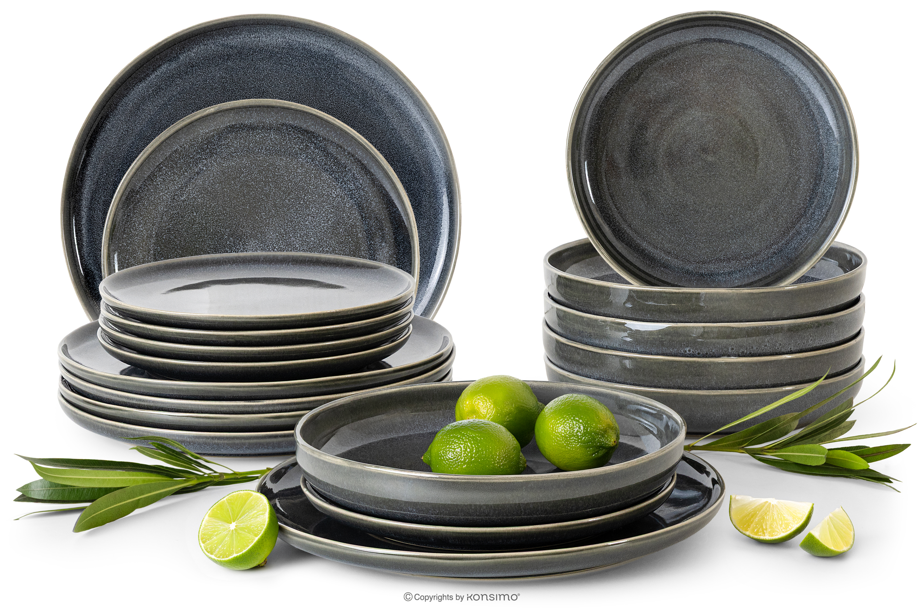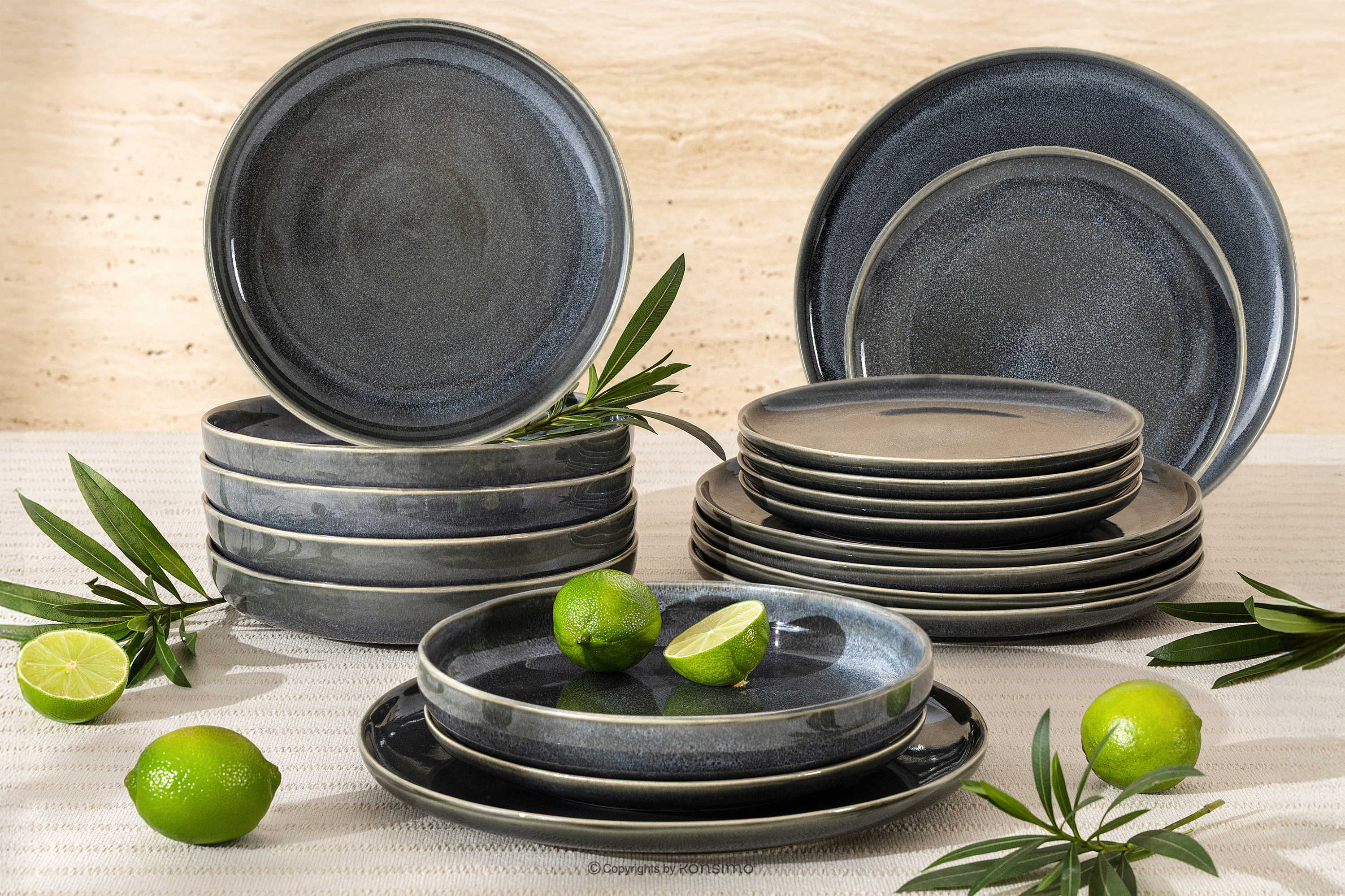 EDA Sada riadu pre 6 osôb (18 ks) z keramiky v rustikálnom štýle modrá/sivá/béžová
