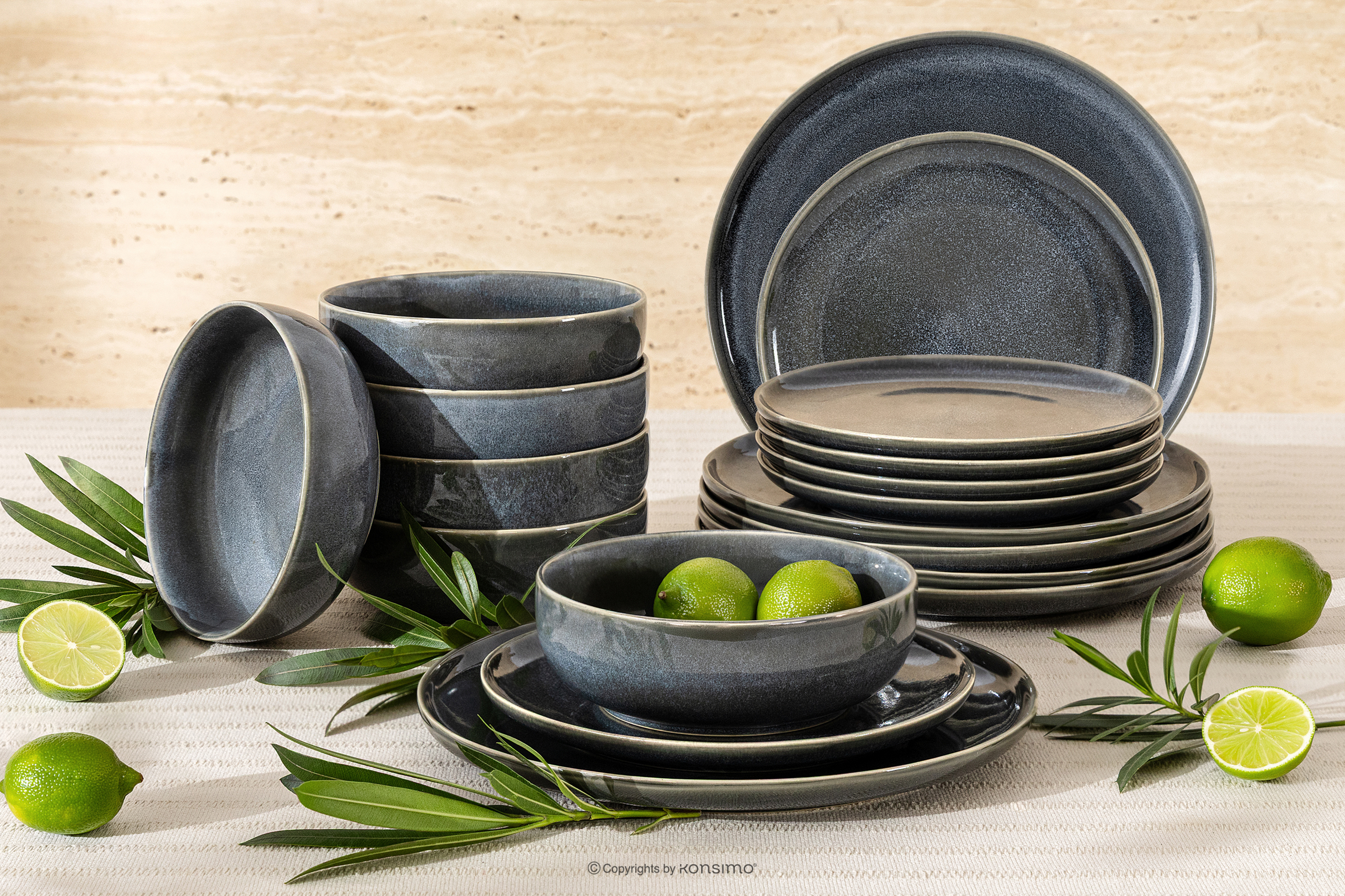EDA Sada riadu pre 6 osôb (18 ks) z keramiky v rustikálnom štýle modrá/sivá/béžová