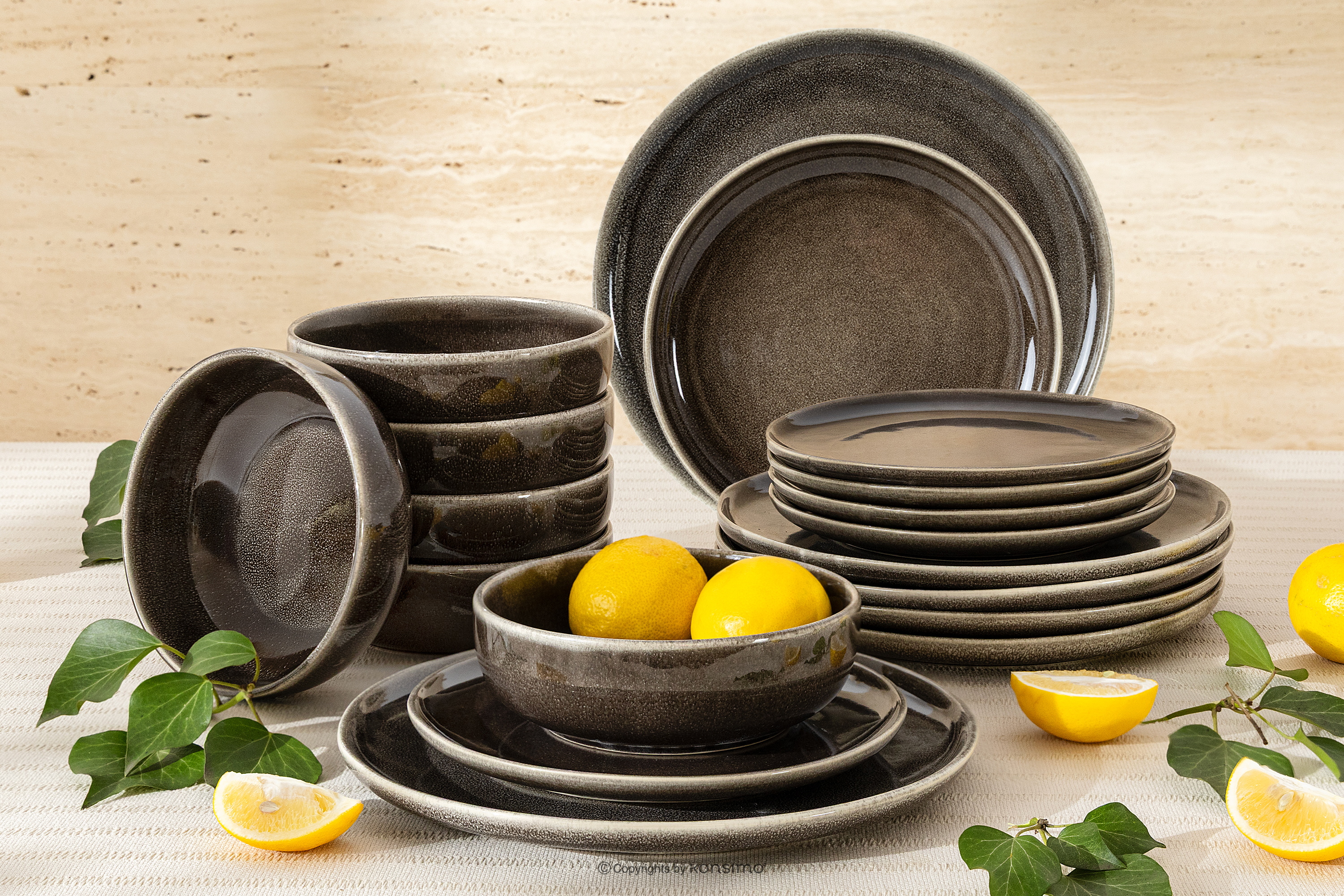 Sada riadu pre 6 osôb (18 ks) z keramiky v rustikálnom štýle hnedá/sivá/béžová navrhnuté s ohľadom na odolnosť, pohodlie a dlhotrvajúcu krásu. Každý kus je vytvorený pomocou procesu, ktorý kombinuje tradičné remeselné zručnosti s modernými spracovateľskými technikami, vďaka čomu je riad vysoko odolný voči každodennému používaniu. Keramika je pevná, vďaka čomu je ideálna ako na elegantné stolovanie, tak aj na každodenné rodinné jedlá.