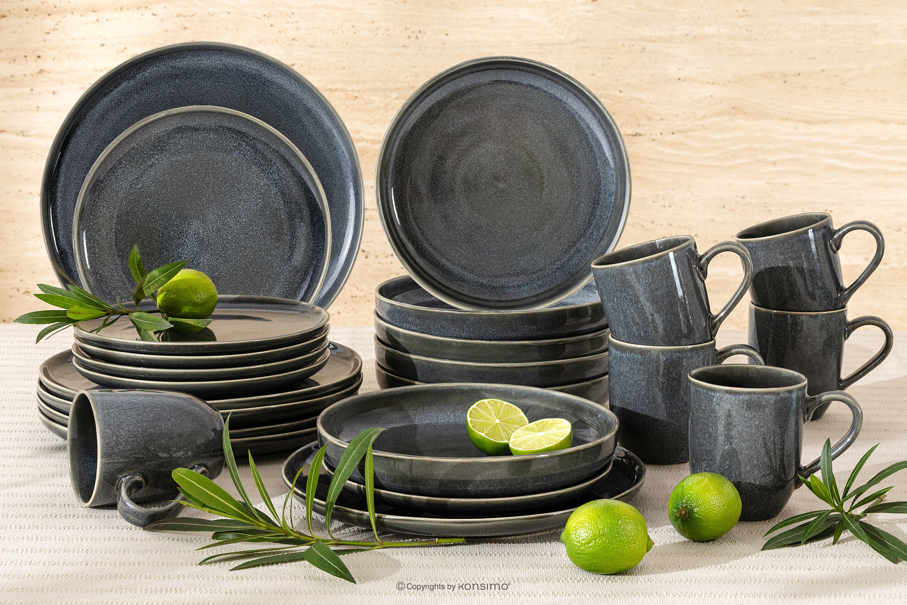 Súprava riadu pre 6 osôb (24 ks) z keramiky v rustikálnom štýle modrá/sivá/béžová navrhnuté s ohľadom na odolnosť, pohodlie a dlhotrvajúcu krásu. Každý kus je vytvorený pomocou procesu, ktorý kombinuje tradičné remeselné zručnosti s modernými spracovateľskými technikami, vďaka čomu je riad vysoko odolný voči každodennému používaniu. Keramika je pevná, vďaka čomu je ideálna ako na elegantné stolovanie, tak aj na každodenné rodinné jedlá.