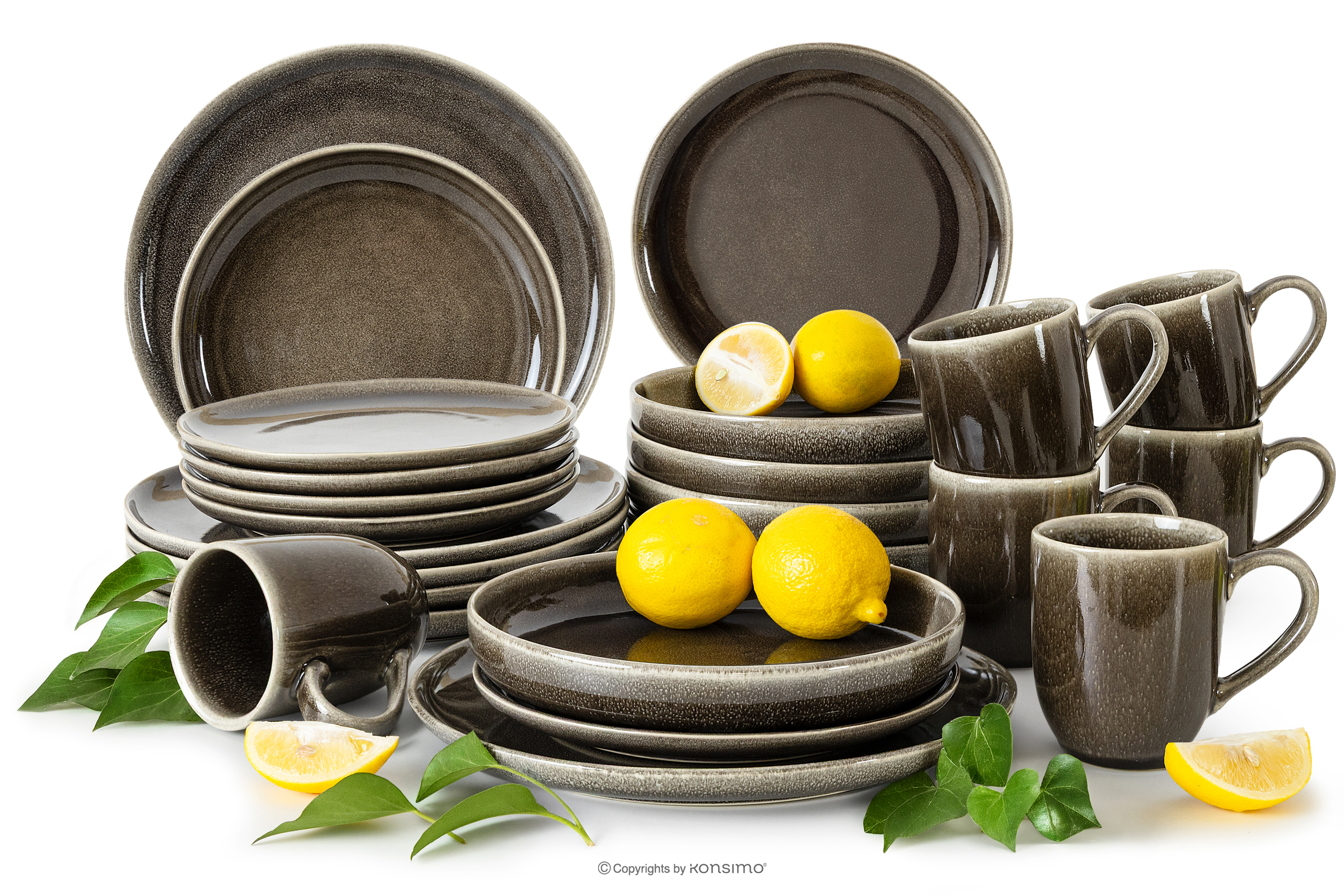 EDA Súprava riadu pre 6 osôb (24 ks) z keramiky v rustikálnom štýle hnedá/sivá/béžová