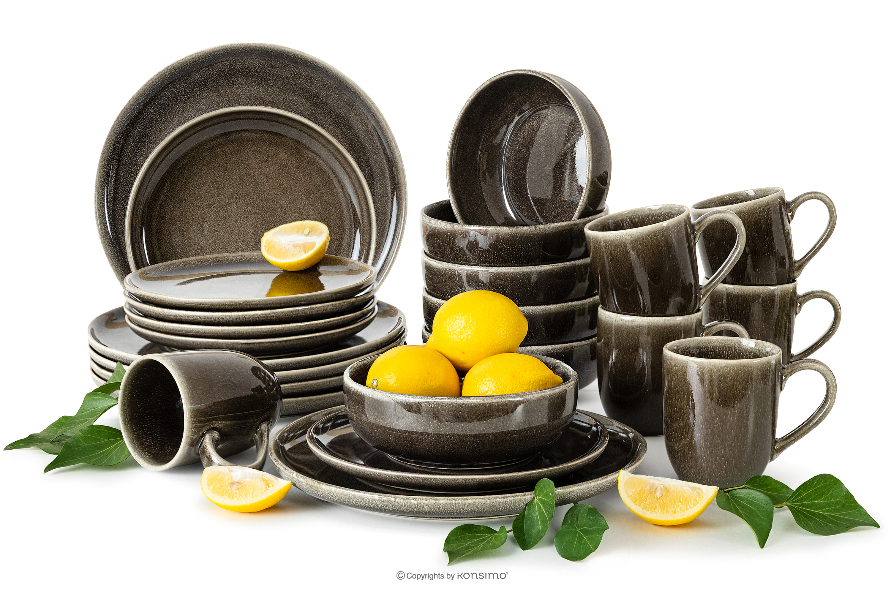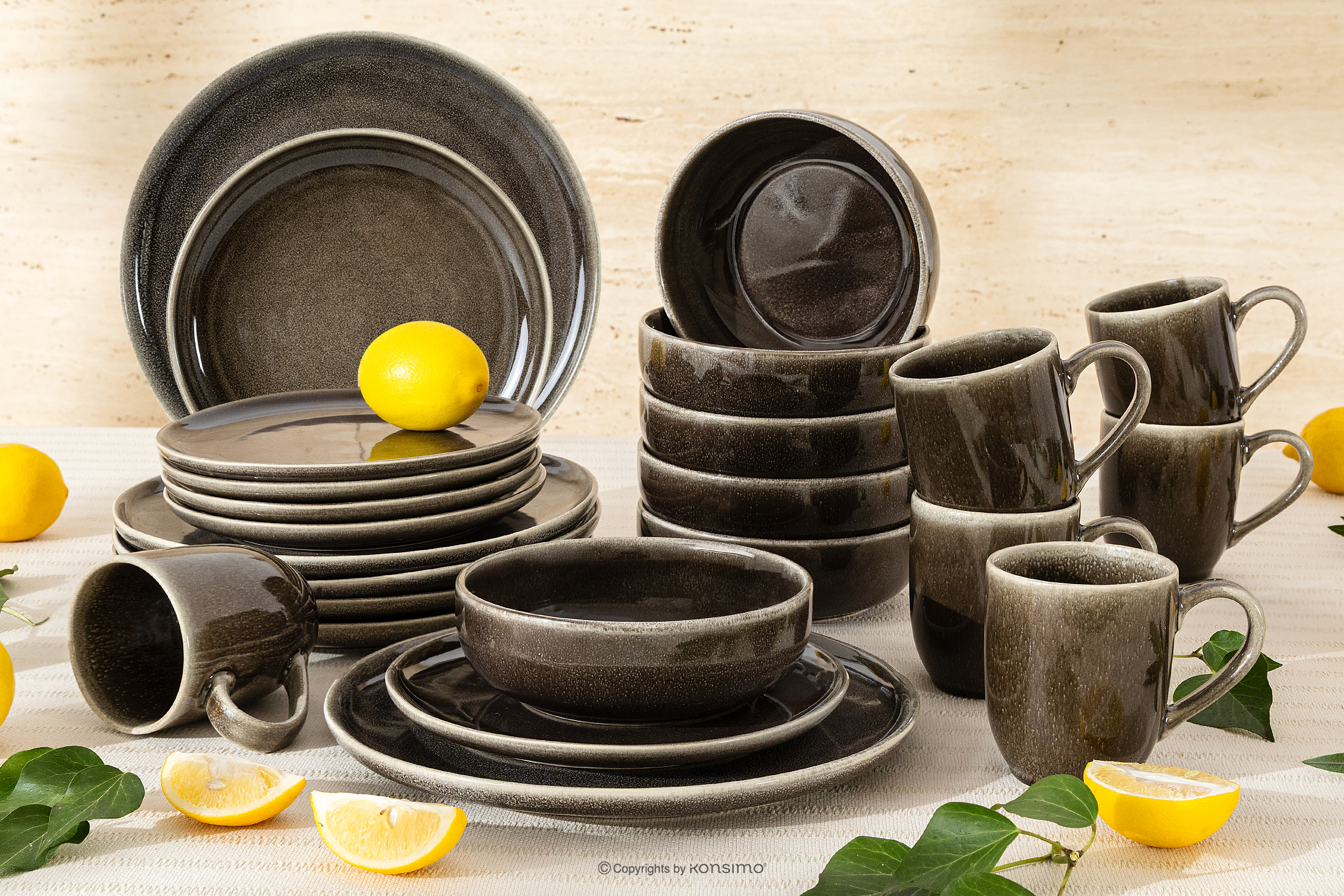 produktu Jedálenský súprava (24 ks) z keramiky v rustikálnom štýle hnedá/sivá/béžová pre 6 osôb.